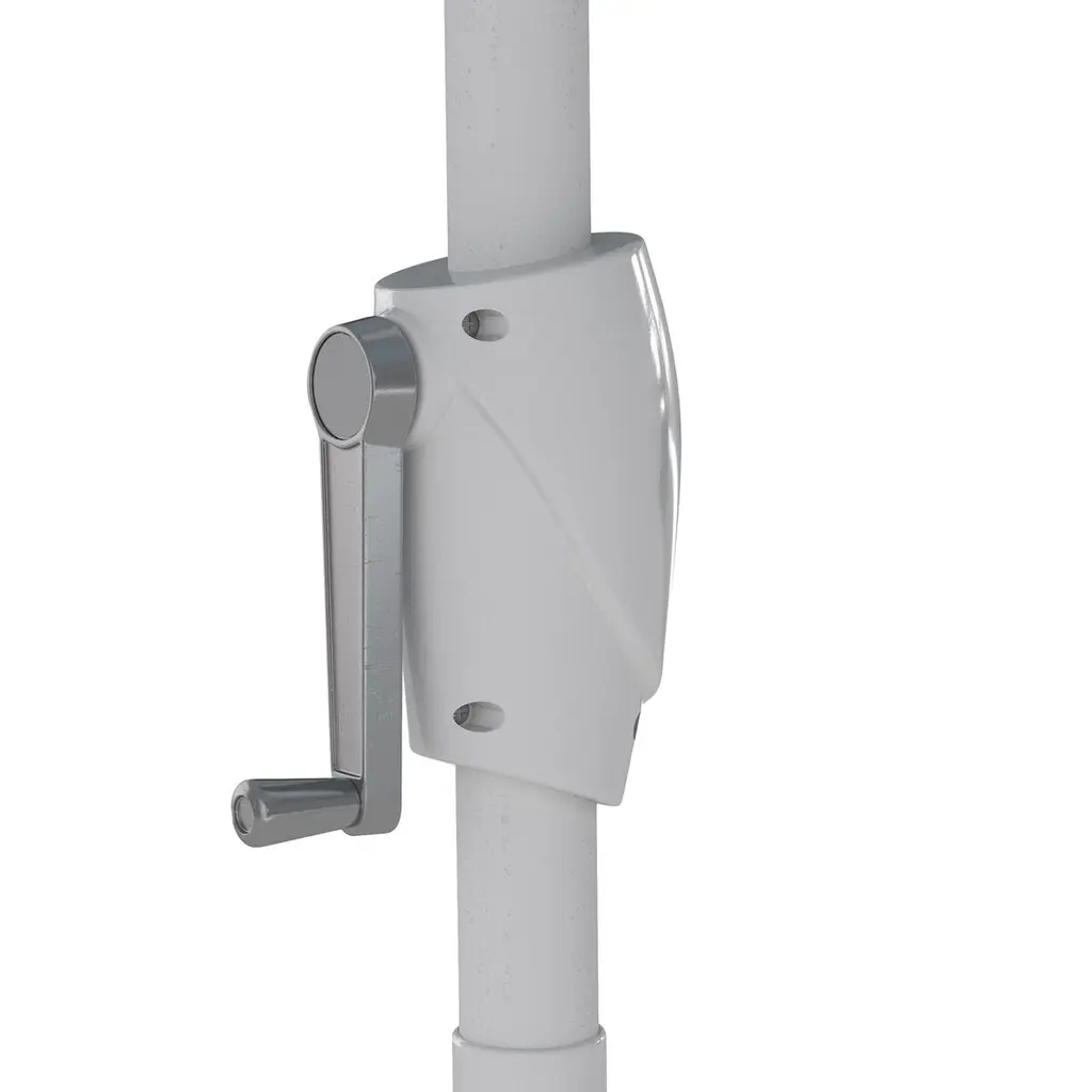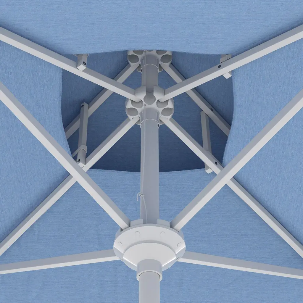 Designed by us and available only here: Whether you're entertaining or just lounging outdoors, catch some shade in style with this tiered patio umbrella. Its square canopy is crafted from durable Sunbrella acrylic to protect against the elements, while its frame is crafted from a combination of sturdy aluminum and zinc plated steel with a crank open, non-tilt function. An umbrella base is not included but is required for use.