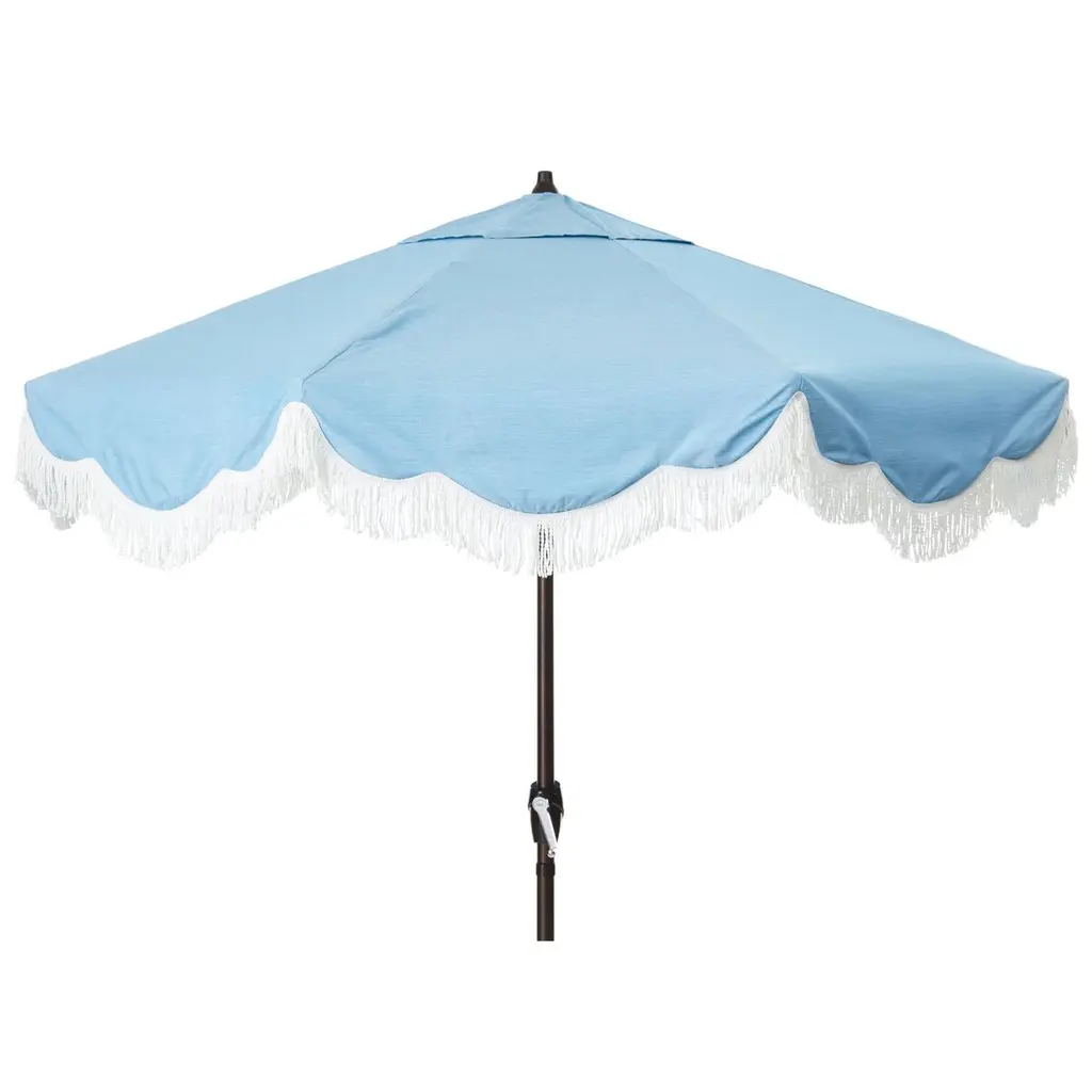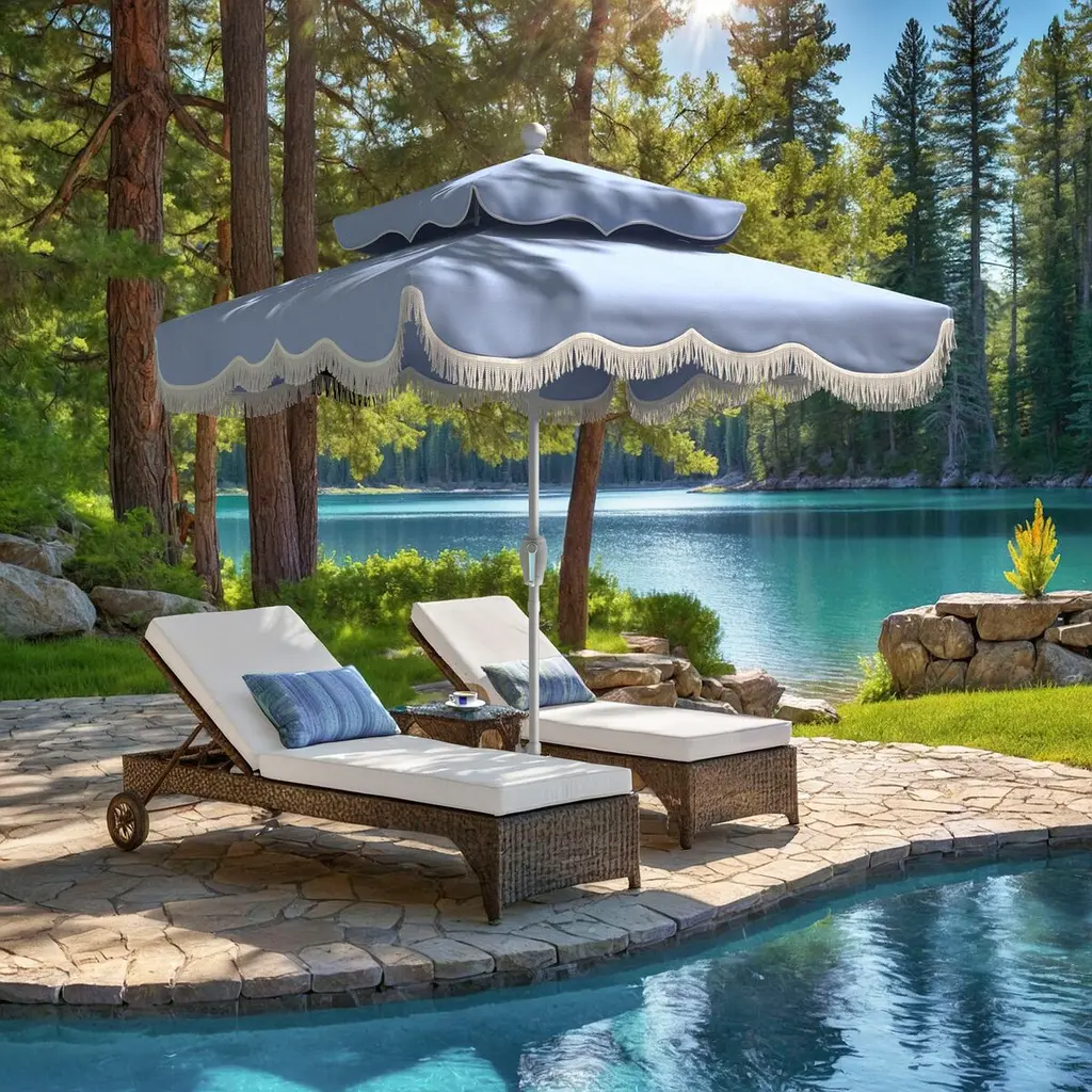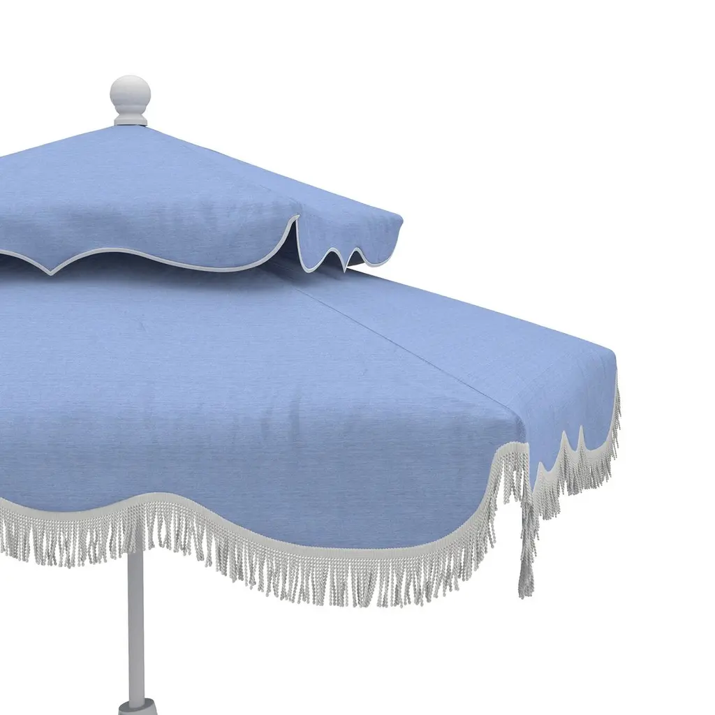 Ripple Fringe Two-tier Square Patio Umbrella, Sunbrella