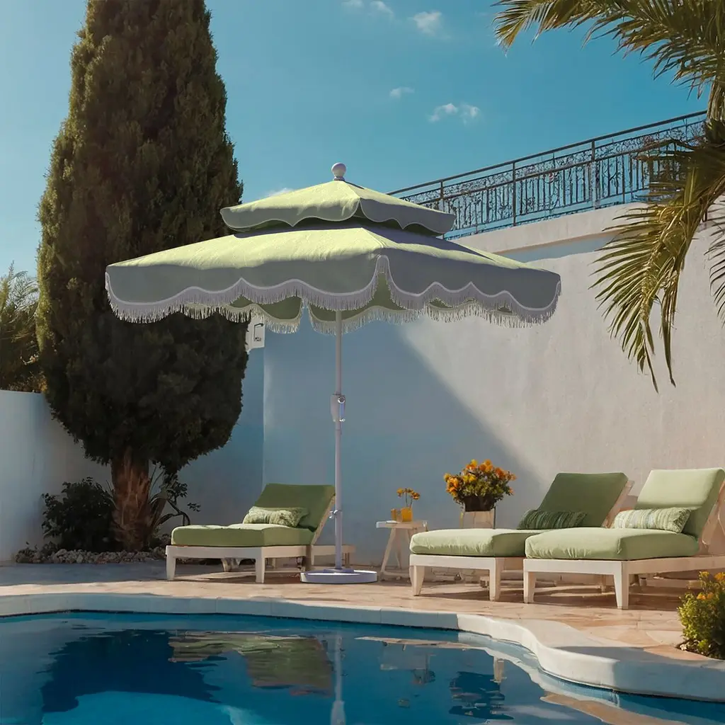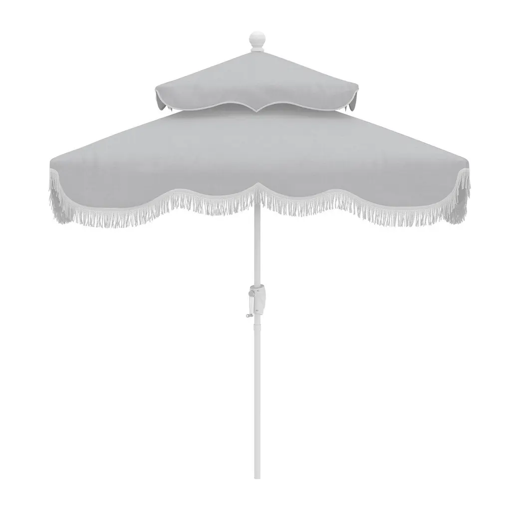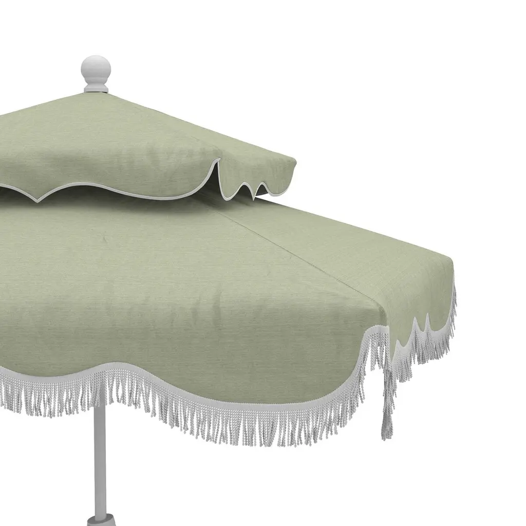 Ripple Fringe Two-tier Square Patio Umbrella, Sunbrella