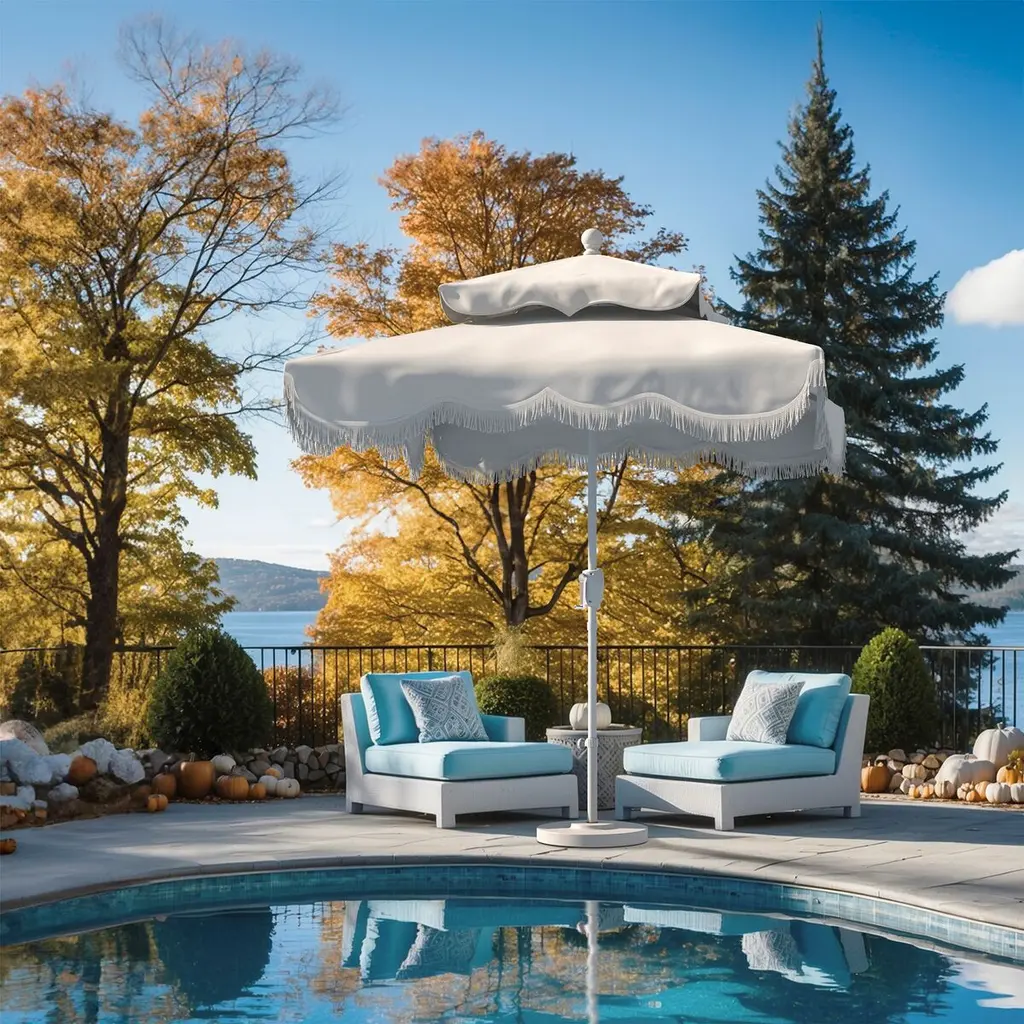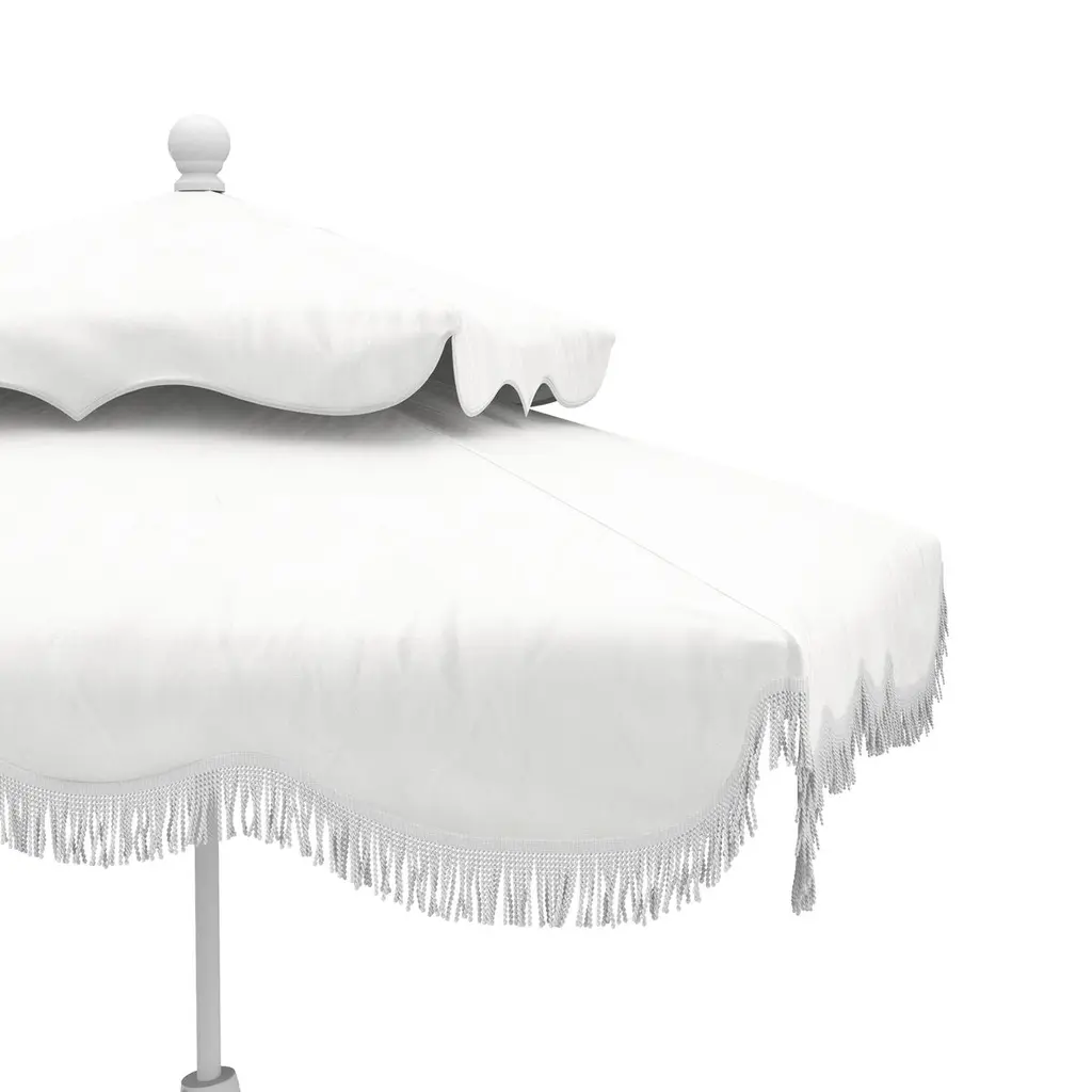 Ripple Fringe Two-tier Square Patio Umbrella, Sunbrella