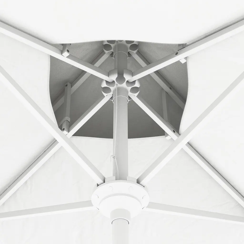 Designed by us and available only here: Whether you're entertaining or just lounging outdoors, catch some shade in style with this tiered patio umbrella. Its square canopy is crafted from durable Sunbrella acrylic to protect against the elements, while its frame is crafted from a combination of sturdy aluminum and zinc plated steel with a crank open, non-tilt function. An umbrella base is not included but is required for use.