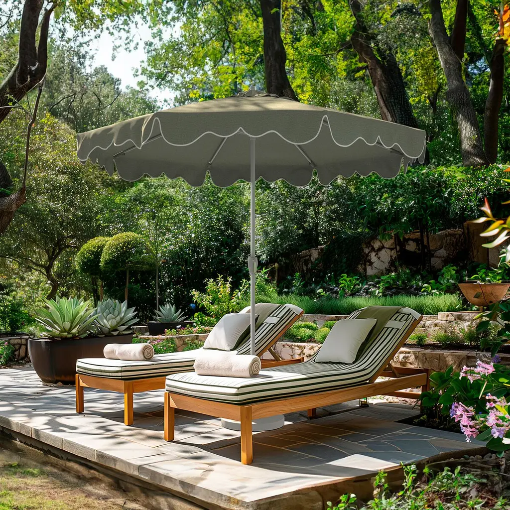 Designed by us and available only here: Whether you're entertaining or just lounging outdoors, catch some shade in style with this patio umbrella. Its canopy is crafted from durable Sunbrella acrylic to protect against the elements, while its frame is made using a combination of sturdy aluminum and zinc plated steel and features a tilt-and-crank function. An umbrella base is not included but is required for use.