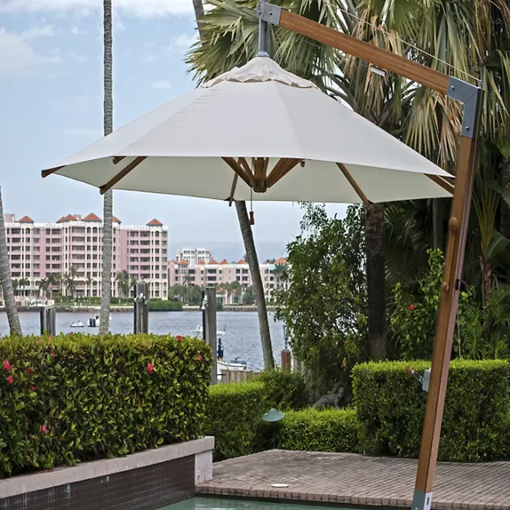 Round Levante Side Wind Bamboo Cantilever Umbrella With Base