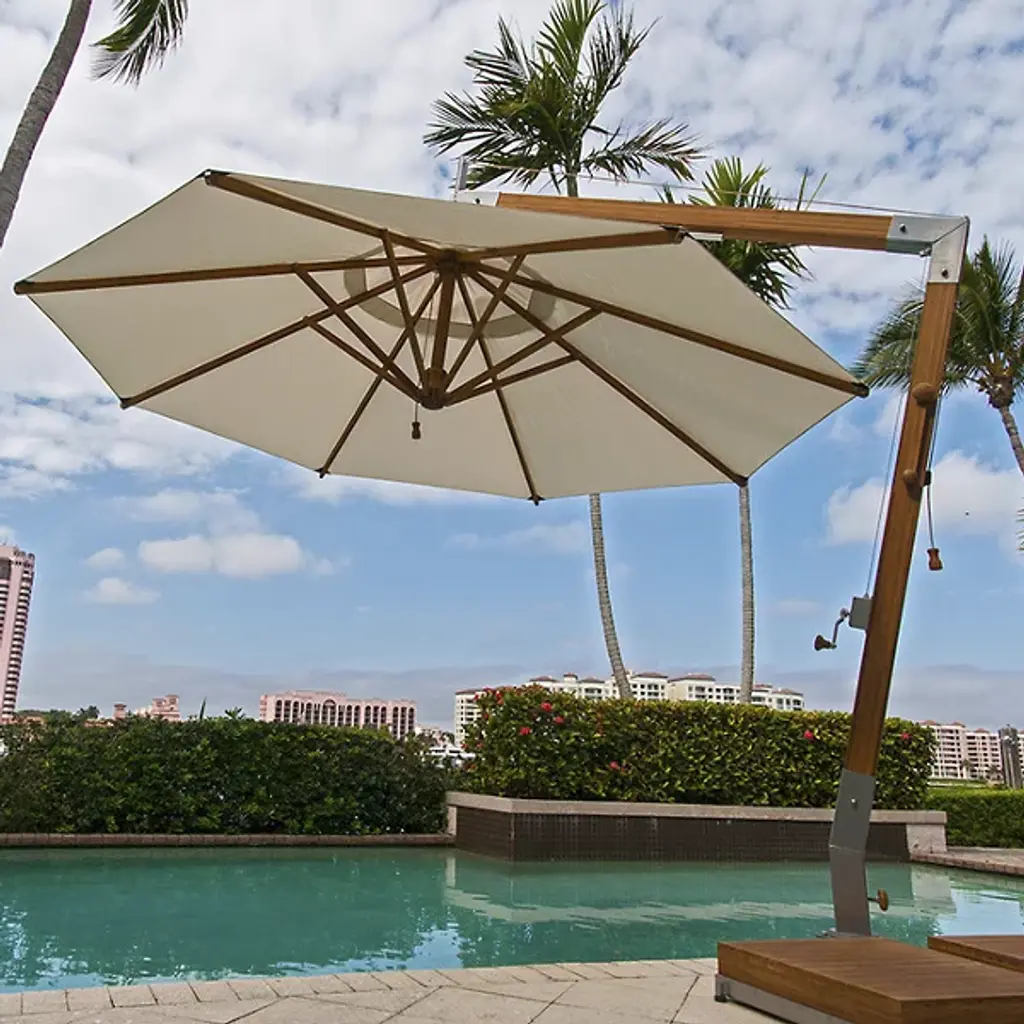Round Levante Side Wind Bamboo Cantilever Umbrella With Base