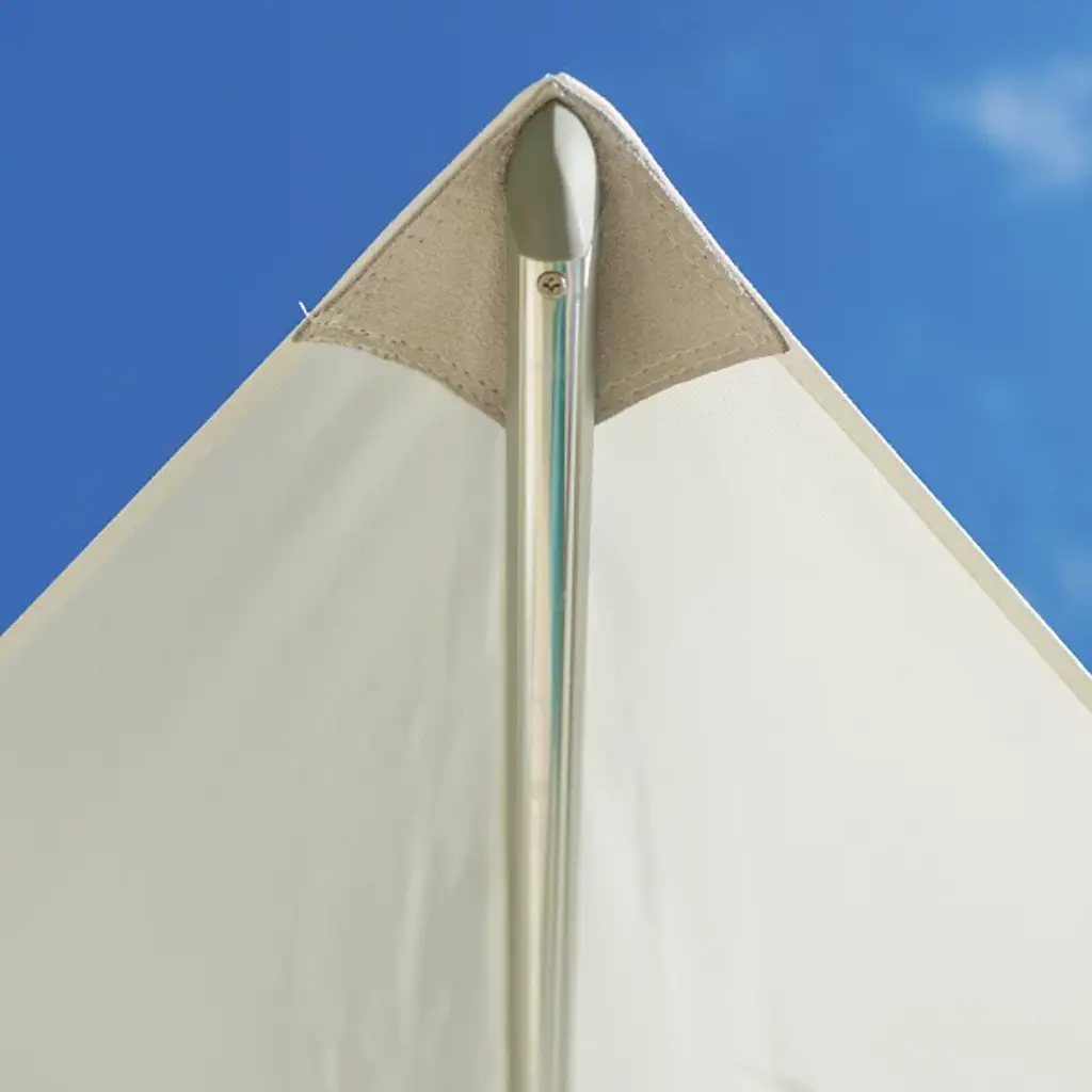 Shade your outside gathering spaces with the Santa Ana Round Umbrella from Bambrella. A sleek mix of metals creates a strong frame able to stand up in all weather, while lighter aluminum arms socket into a nylon runner and hub held up by a pole joined by a stainless-steel connector. This central pole splits in two for easy storage and movement, while a proprietary cleat system offers more deployment flexibility for the durable Spuncrylic canopy than the usual pin. This umbrella is sold separately from its base.