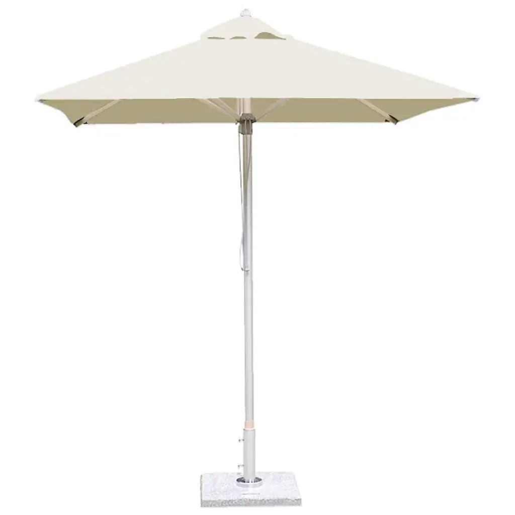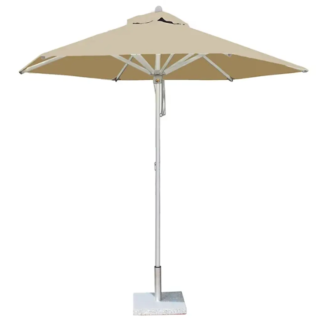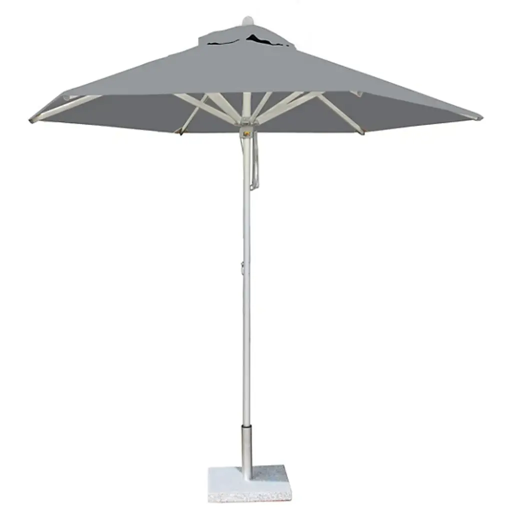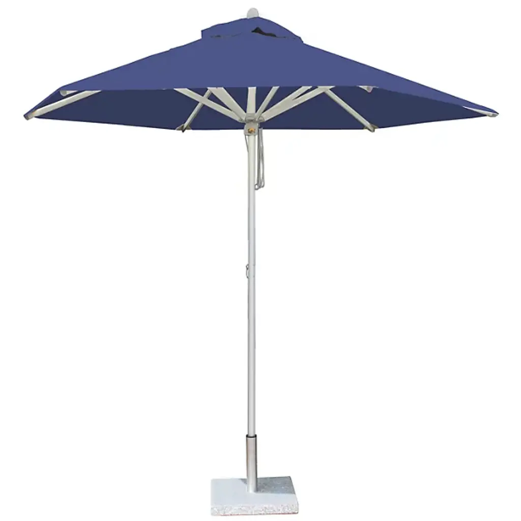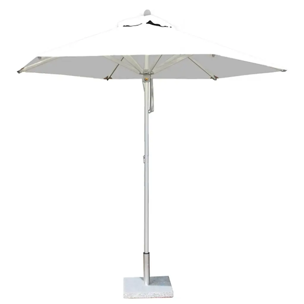 Shade your outside gathering spaces with the Santa Ana Round Umbrella from Bambrella. A sleek mix of metals creates a strong frame able to stand up in all weather, while lighter aluminum arms socket into a nylon runner and hub held up by a pole joined by a stainless-steel connector. This central pole splits in two for easy storage and movement, while a proprietary cleat system offers more deployment flexibility for the durable Spuncrylic canopy than the usual pin. This umbrella is sold separately from its base.