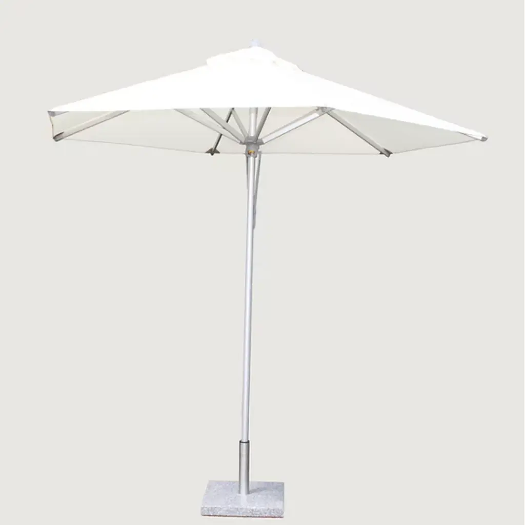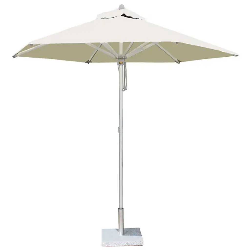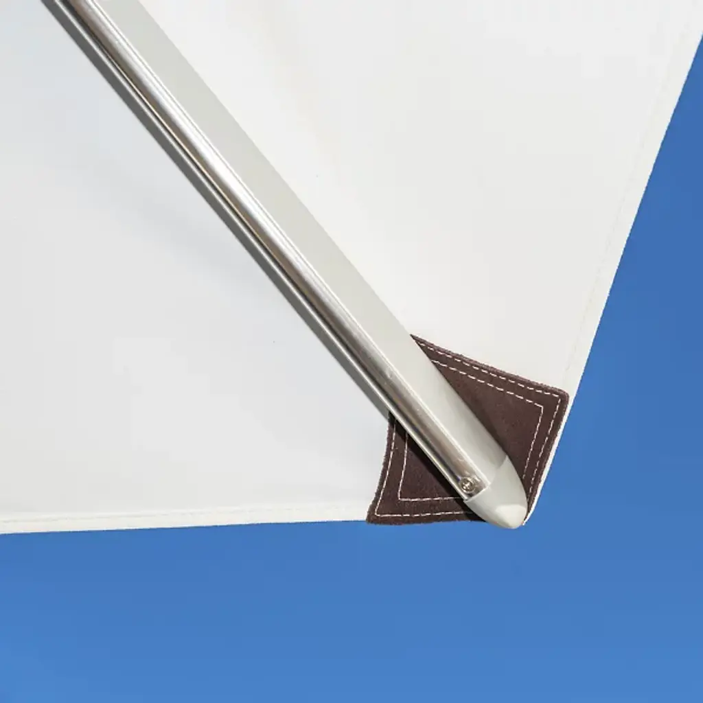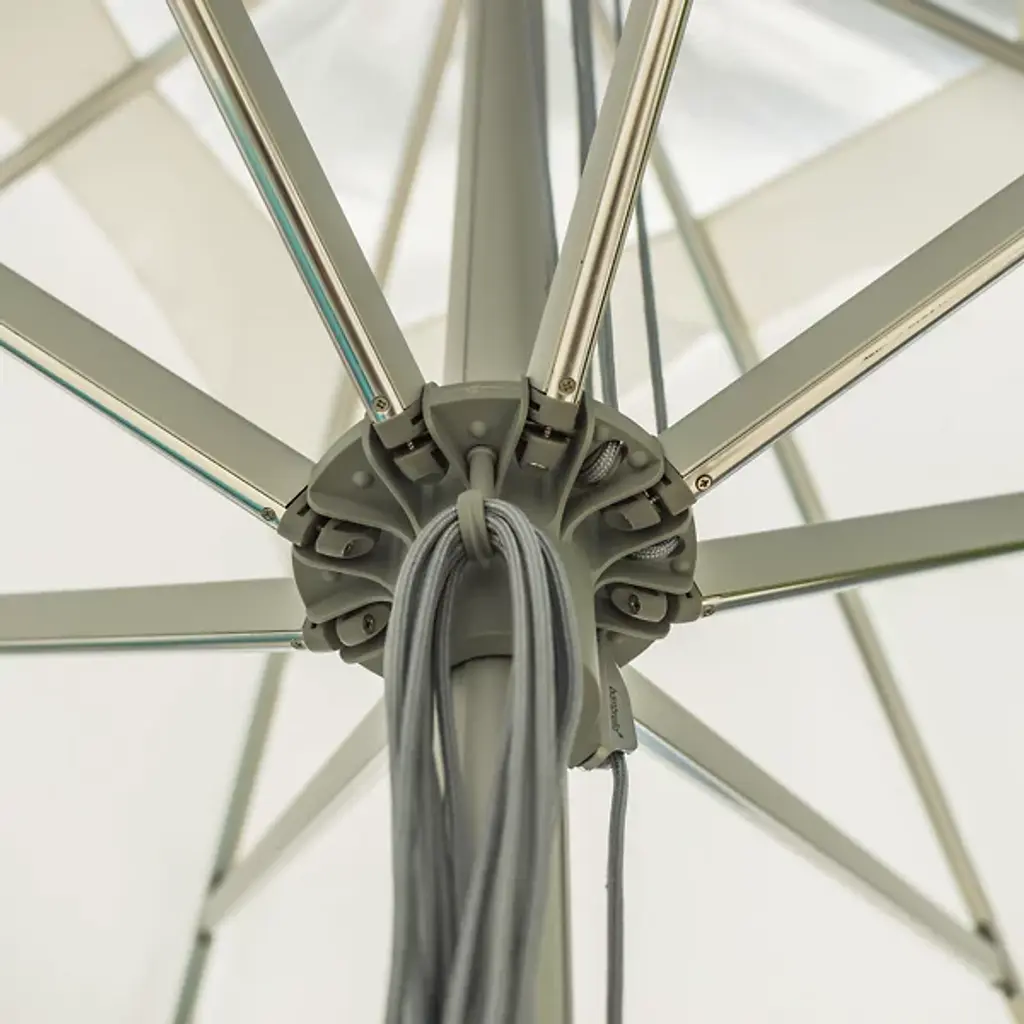 Shade your outside gathering spaces with the Santa Ana Round Umbrella from Bambrella. A sleek mix of metals creates a strong frame able to stand up in all weather, while lighter aluminum arms socket into a nylon runner and hub held up by a pole joined by a stainless-steel connector. This central pole splits in two for easy storage and movement, while a proprietary cleat system offers more deployment flexibility for the durable Spuncrylic canopy than the usual pin. This umbrella is sold separately from its base.