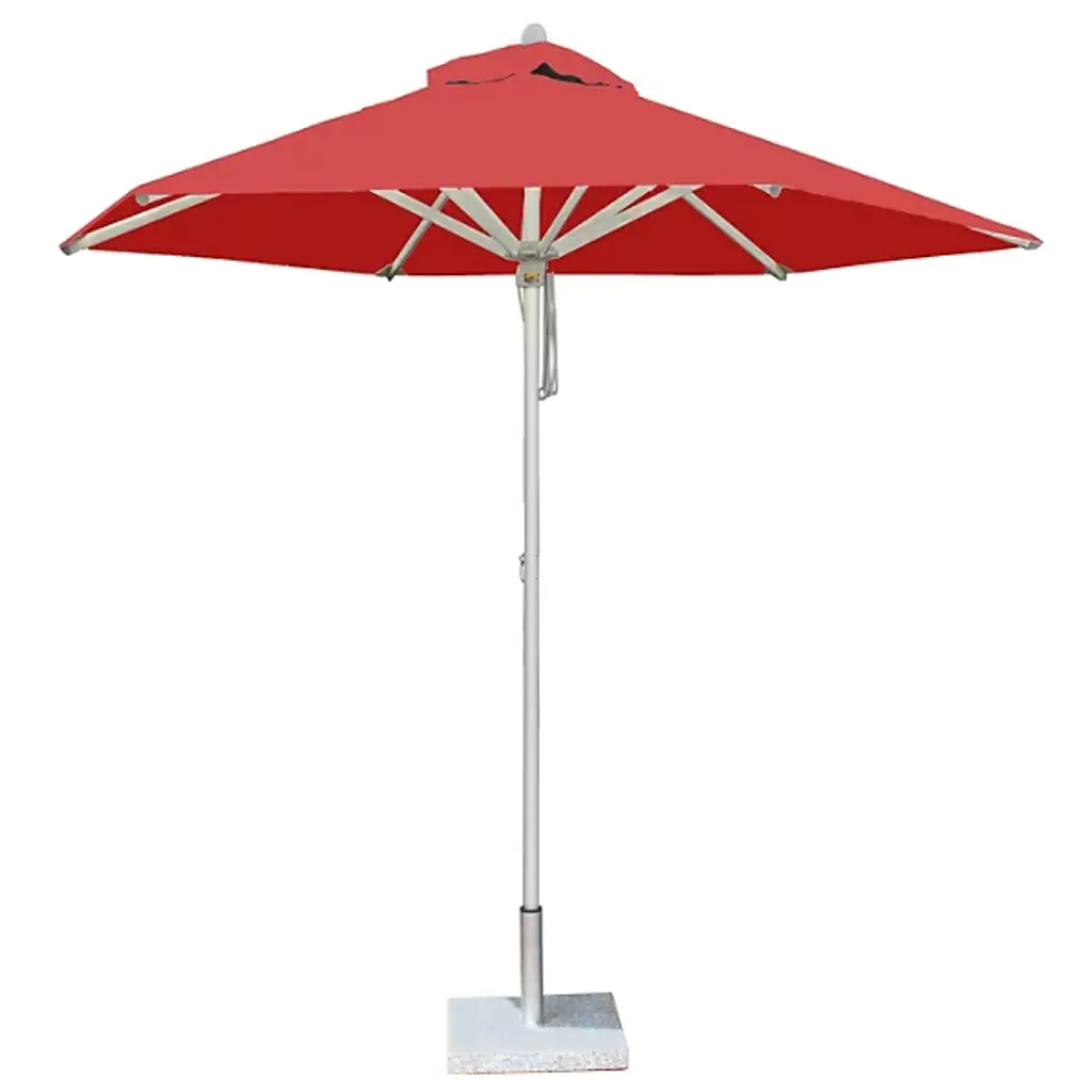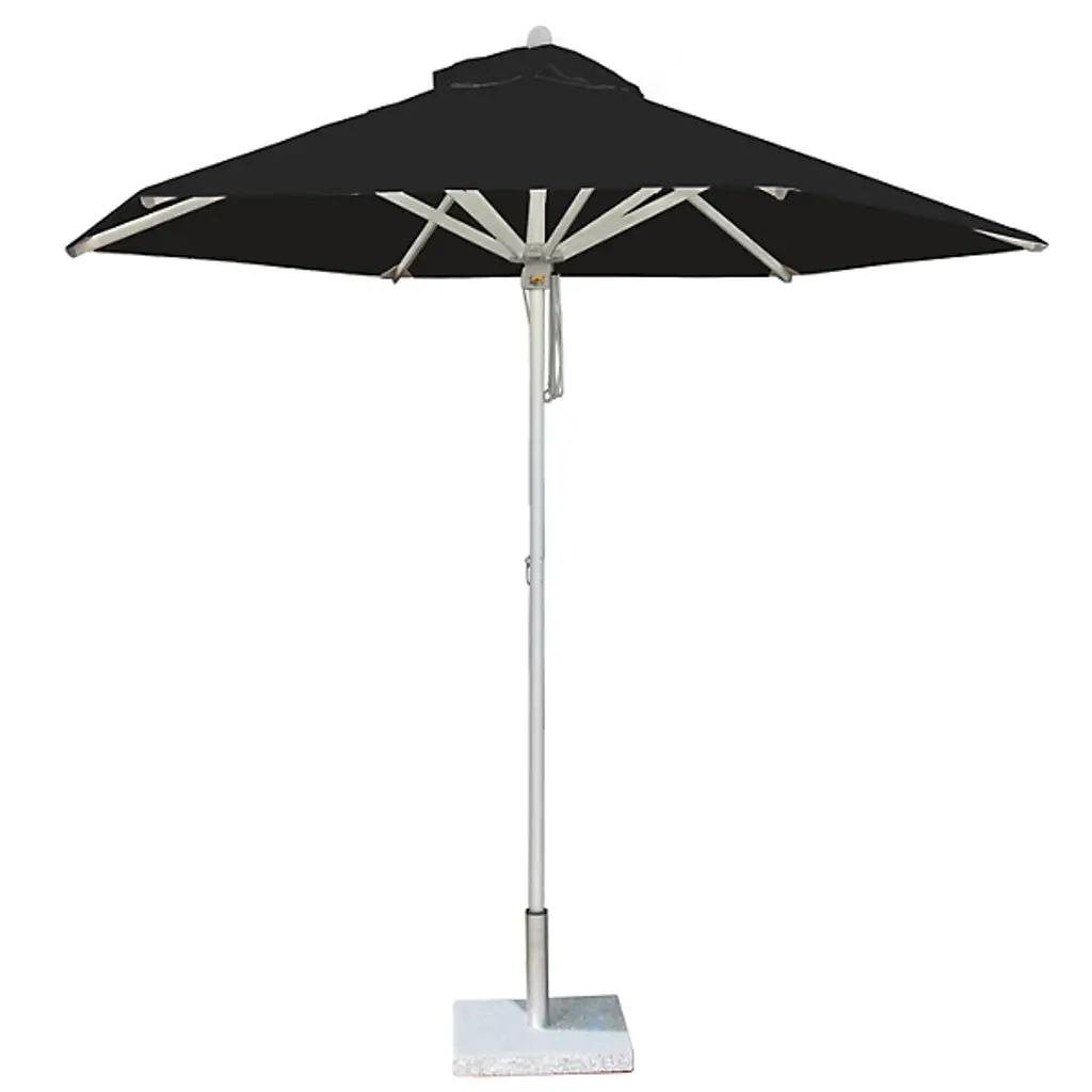 Shade your outside gathering spaces with the Santa Ana Round Umbrella from Bambrella. A sleek mix of metals creates a strong frame able to stand up in all weather, while lighter aluminum arms socket into a nylon runner and hub held up by a pole joined by a stainless-steel connector. This central pole splits in two for easy storage and movement, while a proprietary cleat system offers more deployment flexibility for the durable Spuncrylic canopy than the usual pin. This umbrella is sold separately from its base.