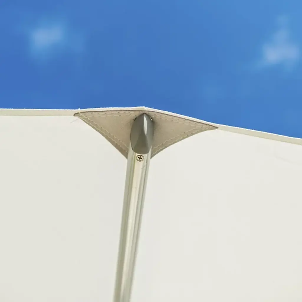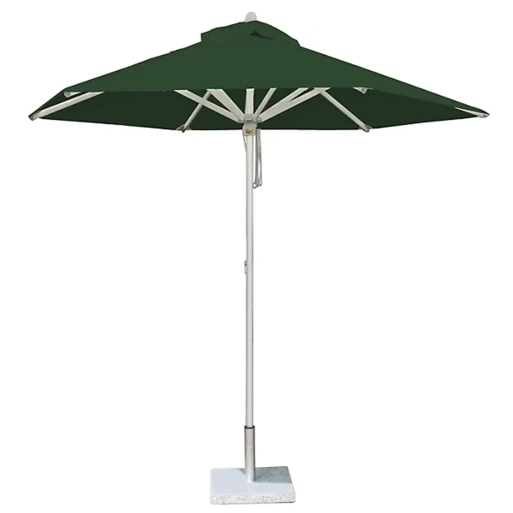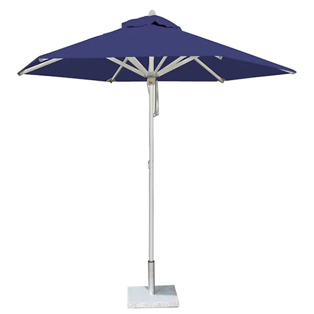 Shade your outside gathering spaces with the Santa Ana Round Umbrella from Bambrella. A sleek mix of metals creates a strong frame able to stand up in all weather, while lighter aluminum arms socket into a nylon runner and hub held up by a pole joined by a stainless-steel connector. This central pole splits in two for easy storage and movement, while a proprietary cleat system offers more deployment flexibility for the durable Spuncrylic canopy than the usual pin. This umbrella is sold separately from its base.