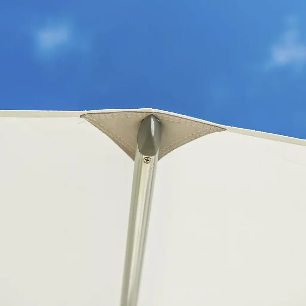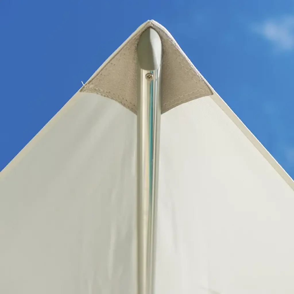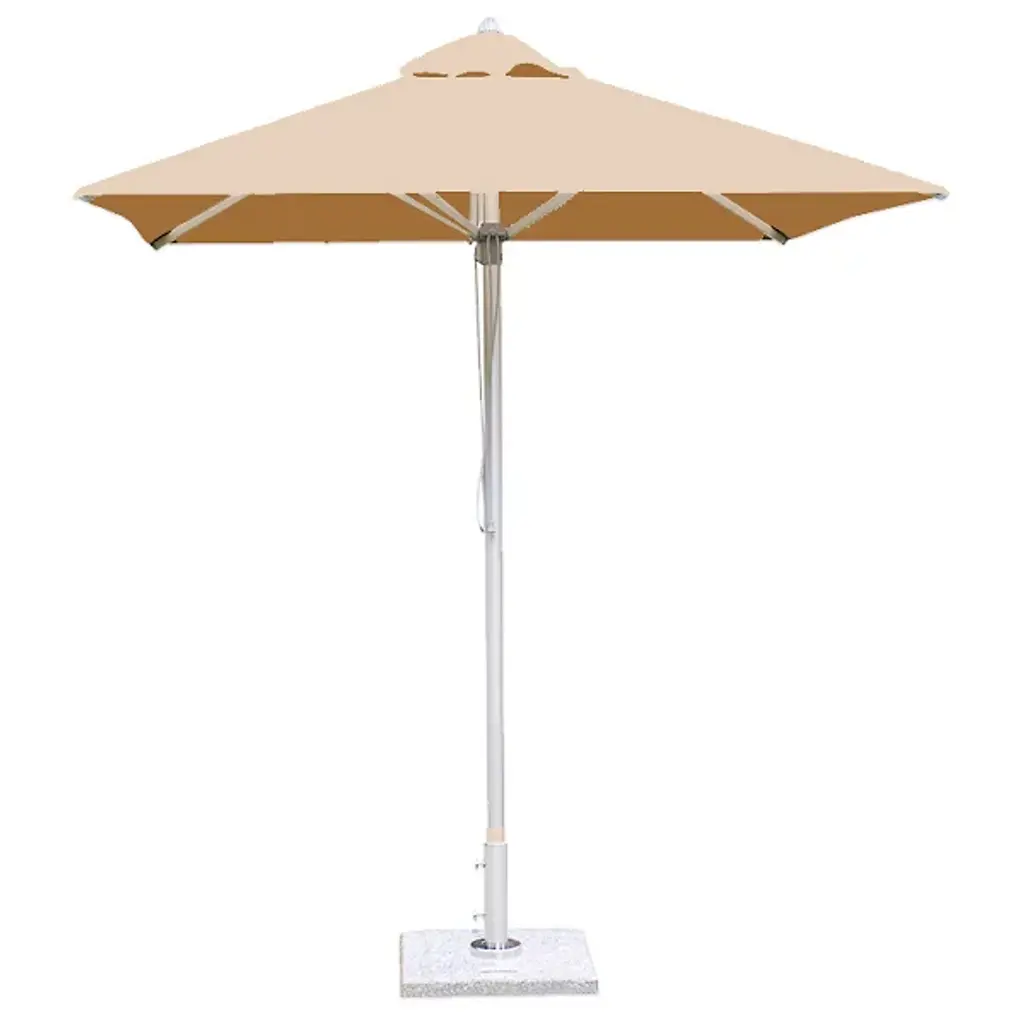 Bring a wide-reaching shade to your open-air areas with the Santa Ana Square Umbrella from Bambrella. A clever contemporary construction, the central pole and arms are made from durable and rust-resistant aluminum, held within a nylon hub and runner actuated by a patented cleat system instead of a holding pin to open the sturdy Spuncrylic shade at a variety of heights. The pole itself breaks down into two pieces for easy storage and movement. The base itself must be purchased separately.