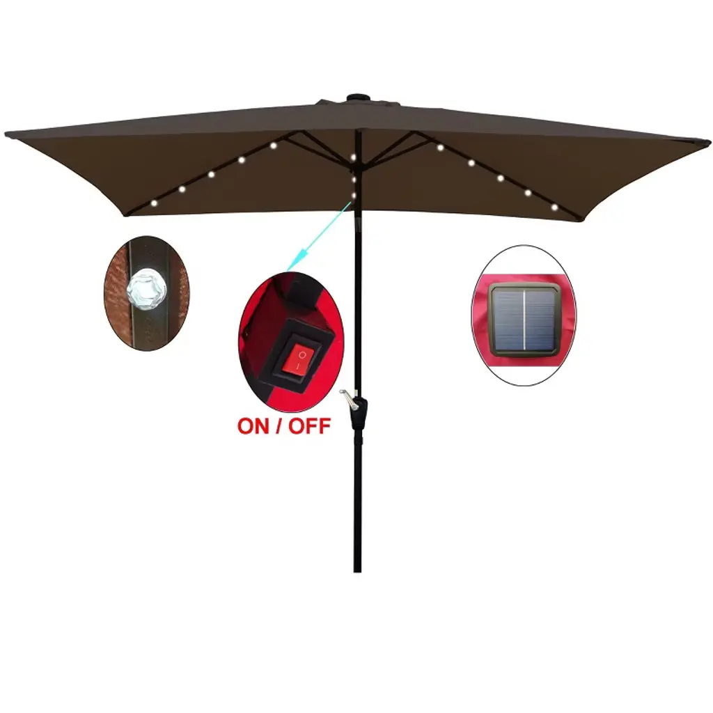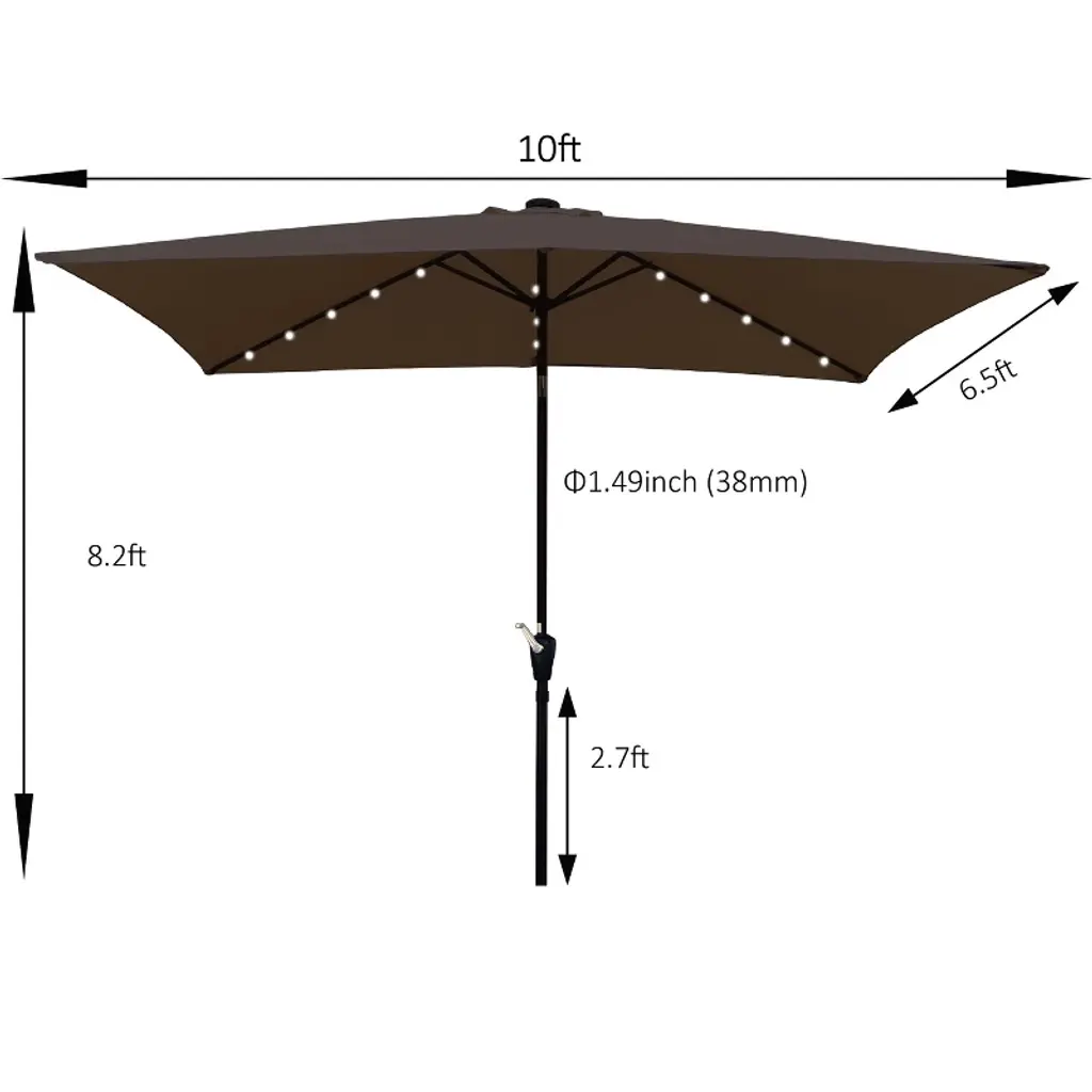 Sapphtopaz 10x6.5ft Patio Umbrella Outdoor Rectangular Led Umbrellas Waterproof With Crank And Push Button Tilt For Garden, Pool, Chocolate