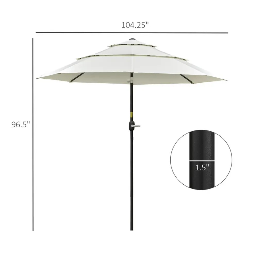 Sapphtopaz 9Ft Patio Umbrella 3 Tiers Waterproof Pool Umbrella Ventilated Top With Crank And Push Button Tilt For Garden, Beach, Pool, Beige