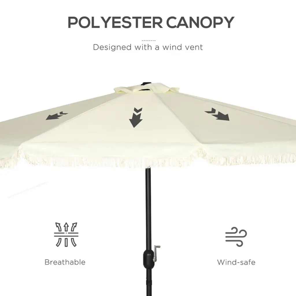 Sapphtopaz 9Ft Patio Umbrella Market Umbrella With Crank And Push Button Tilt 8 Sturdy Ribs And Tassles For Garden, Pool, Deck, Backyard, Cream White