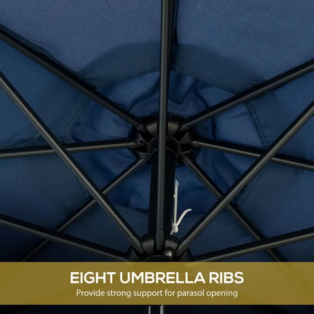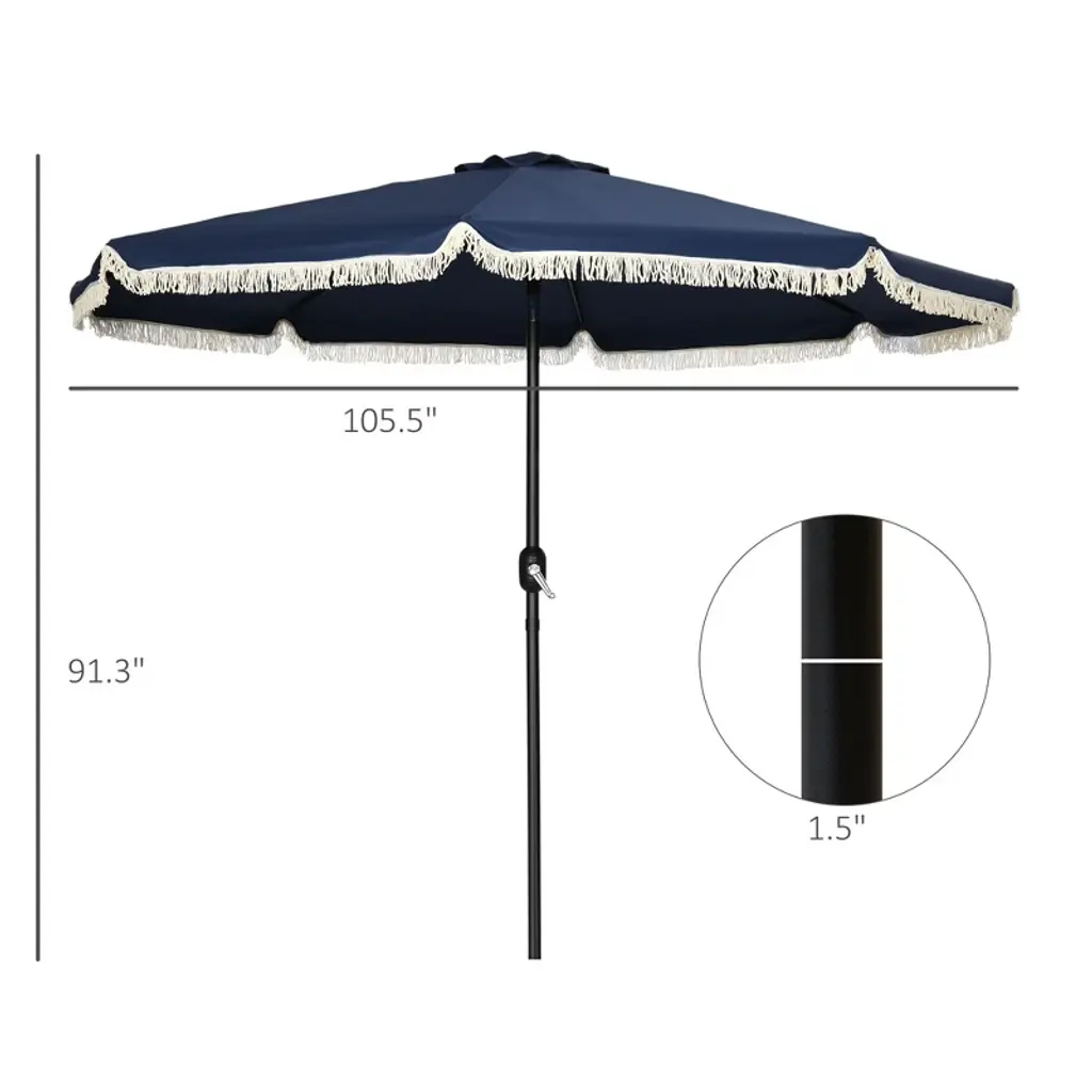 Sapphtopaz 9Ft Patio Umbrella Market Umbrella With Crank And Push Button Tilt 8 Sturdy Ribs And Tassles For Garden, Pool, Deck, Backyard, Dark Blue