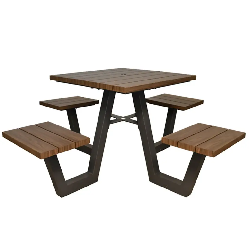 The complete dining table and chair combination meets the dining needs of multiple people, creating a comfortable and convenient outdoor dining experience, making family gatherings more warm; High quality materials and stable structure ensure durability and comfortable support, suitable for outdoor environments; Fashionable and minimalist design paired with an easy to clean surface, both beautiful and convenient for daily maintenance.