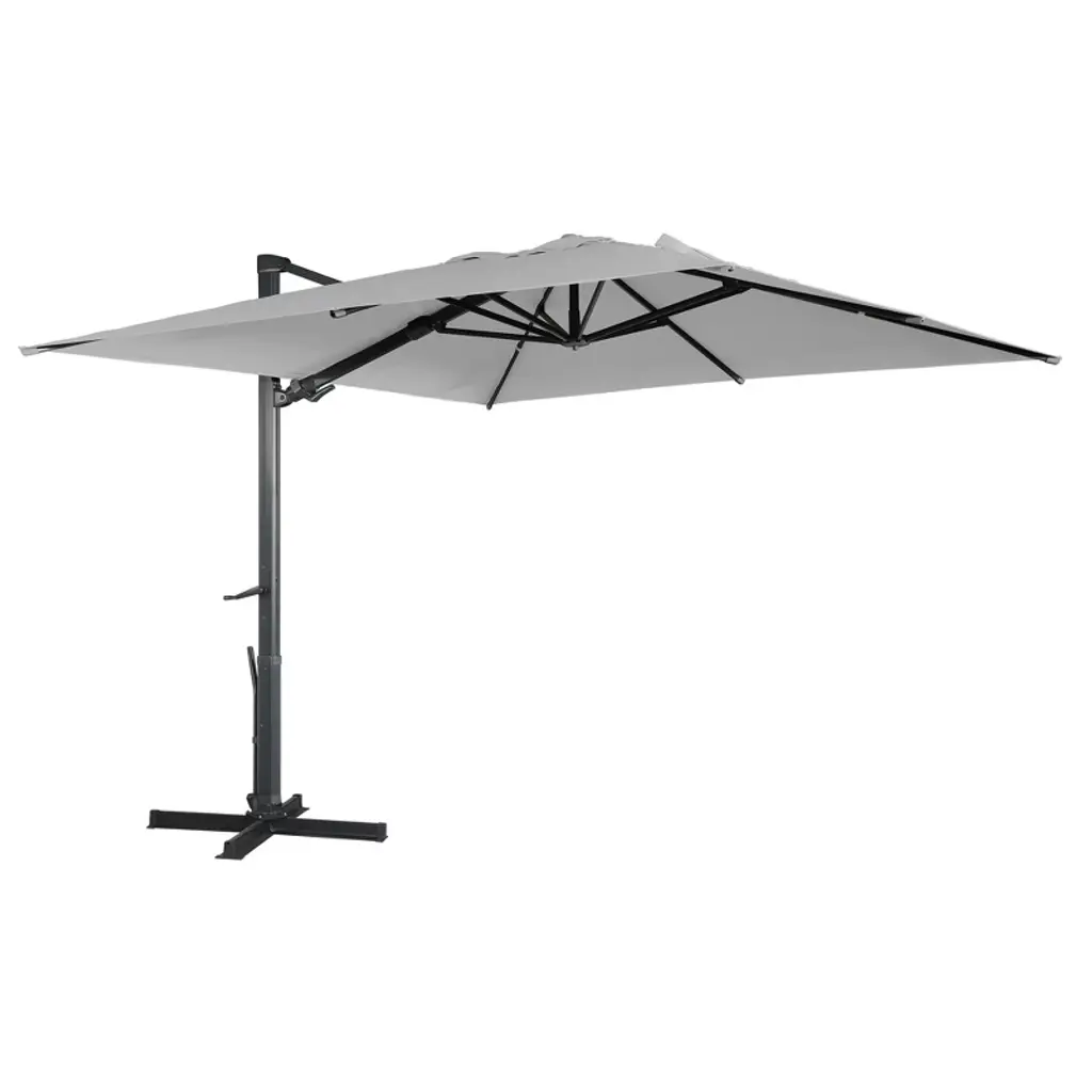 SEGLARÖ Umbrella, hanging - gray/tilting 129 7/8x94 1/2 ". The fabric gives excellent protection against the sun’s UV rays as it has a UPF (Ultraviolet Protection Factor) rating of 50+, which means it blocks 98% of the ultraviolet radiation. The crank makes it easy to open and close the umbrella.