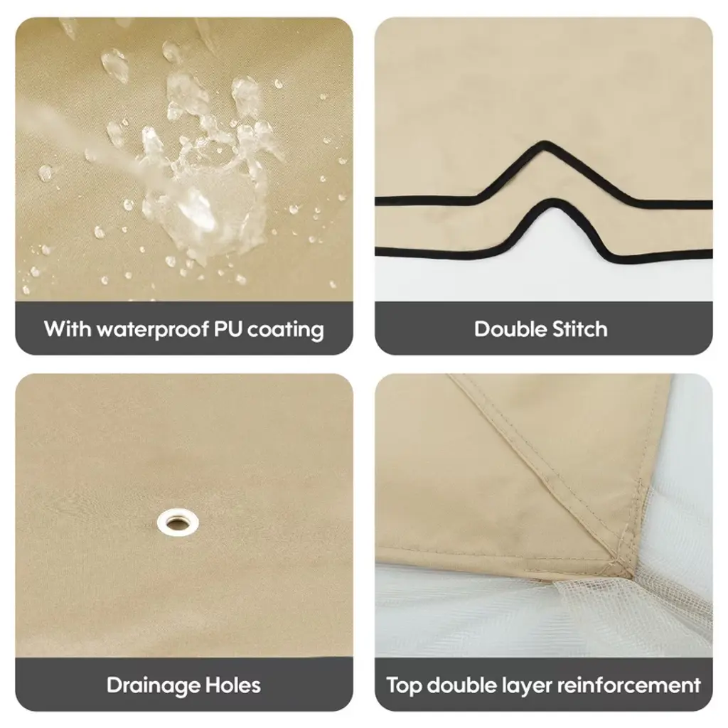 Sevobal Patio Umbrellas Patio Double Roof With Air Vent Gazebo Replacement Canopy Top Fabric For Lawn, Garden, Backyard, Beige, 118"*118"*26.78"
