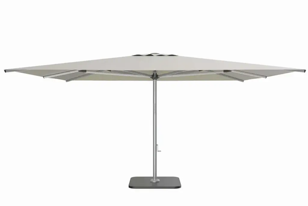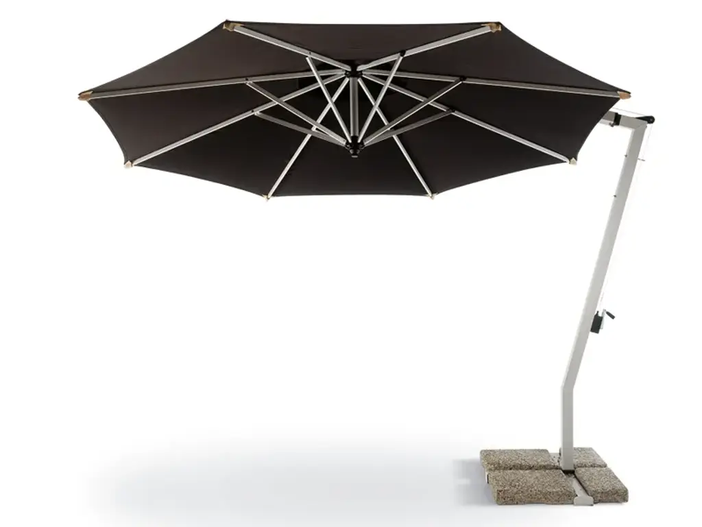 The Solaris Sidepost Umbrella is modern elegance redefined. Inspired by the larger size Polaris, the Solaris impresses in function with an effortless crank to open and infinite tilt function to provide shade coverage at any time of the day.The architectural essence of Shademaker umbrellas began with a unified design, forms, and structure. From this foundation, Shademaker elevates its offering of signature looks by introducing well-crafted styles with advanced functionality and durable materials. Every umbrella embodies true beauty and elegance.Titan Base Note: The Titan Bases hold up to 32 concrete pavers (12”x12”x1.5”). Both are sold separately.