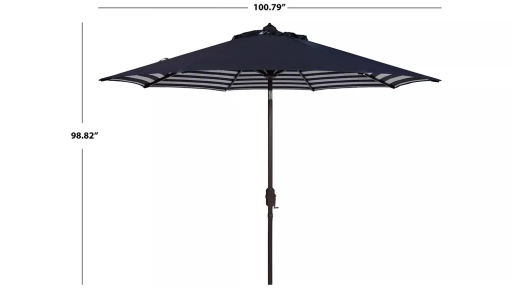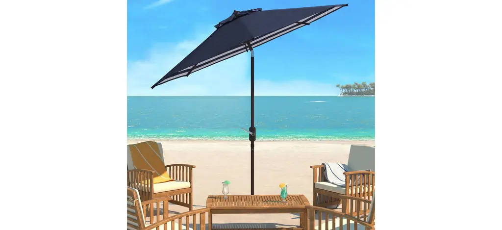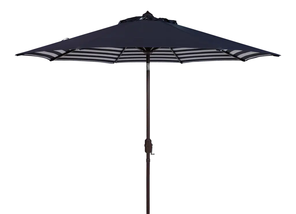 This nine foot crank umbrella was inspired by the sunbathing terrace of Monaco's finest hotel overlooking the Mediterranean. Embracing classic French style, its navy top features a white and navy stripe pattern underneath. For the chic outdoor oasis.