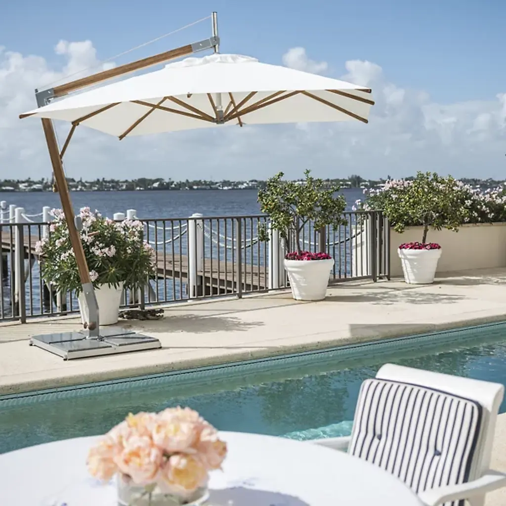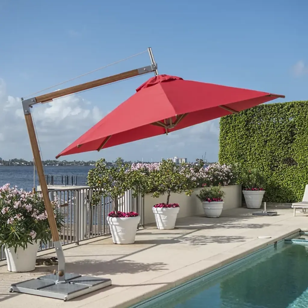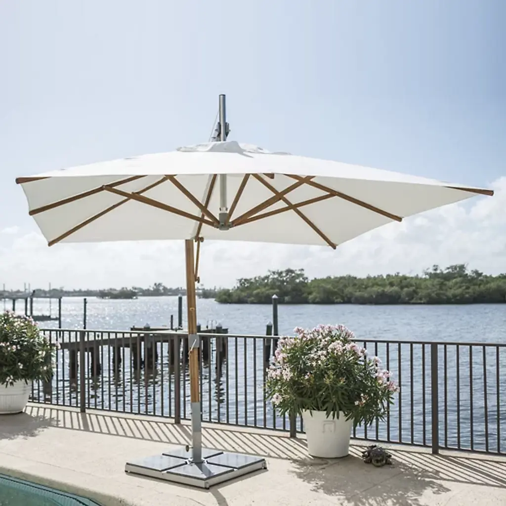 Sirocco Round Side Wind Bamboo Cantilever Umbrella With Base