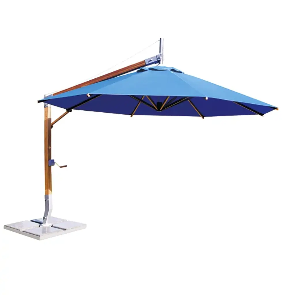 Sirocco Round Side Wind Bamboo Cantilever Umbrella With Base
