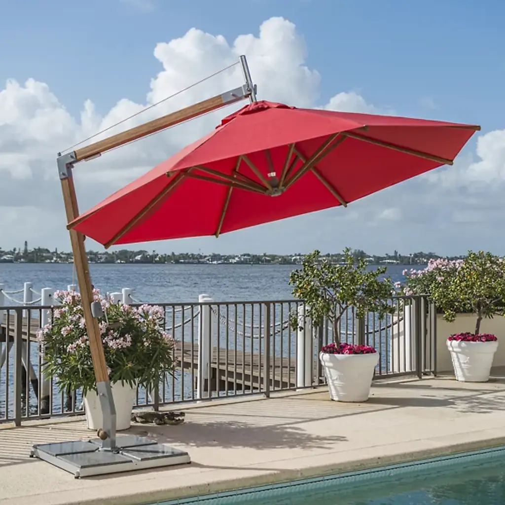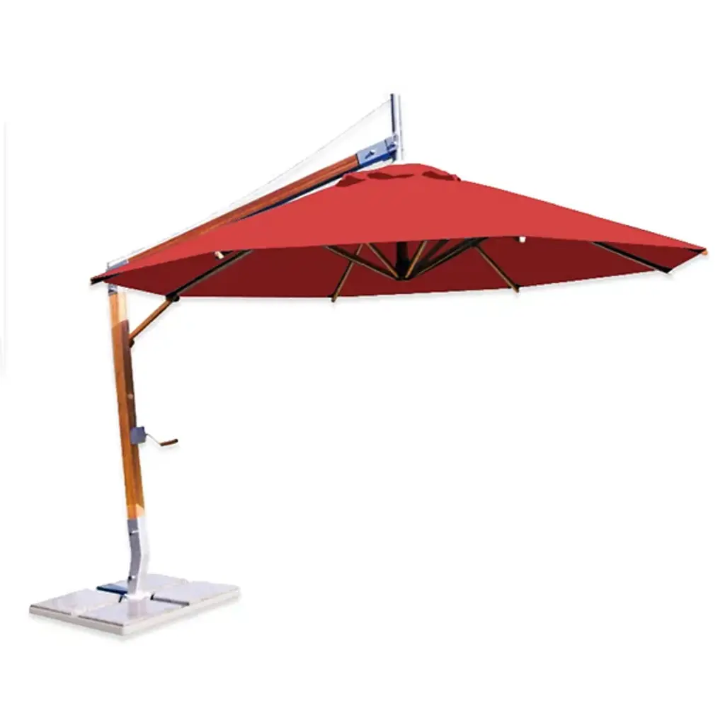 Sirocco Round Side Wind Bamboo Cantilever Umbrella With Base