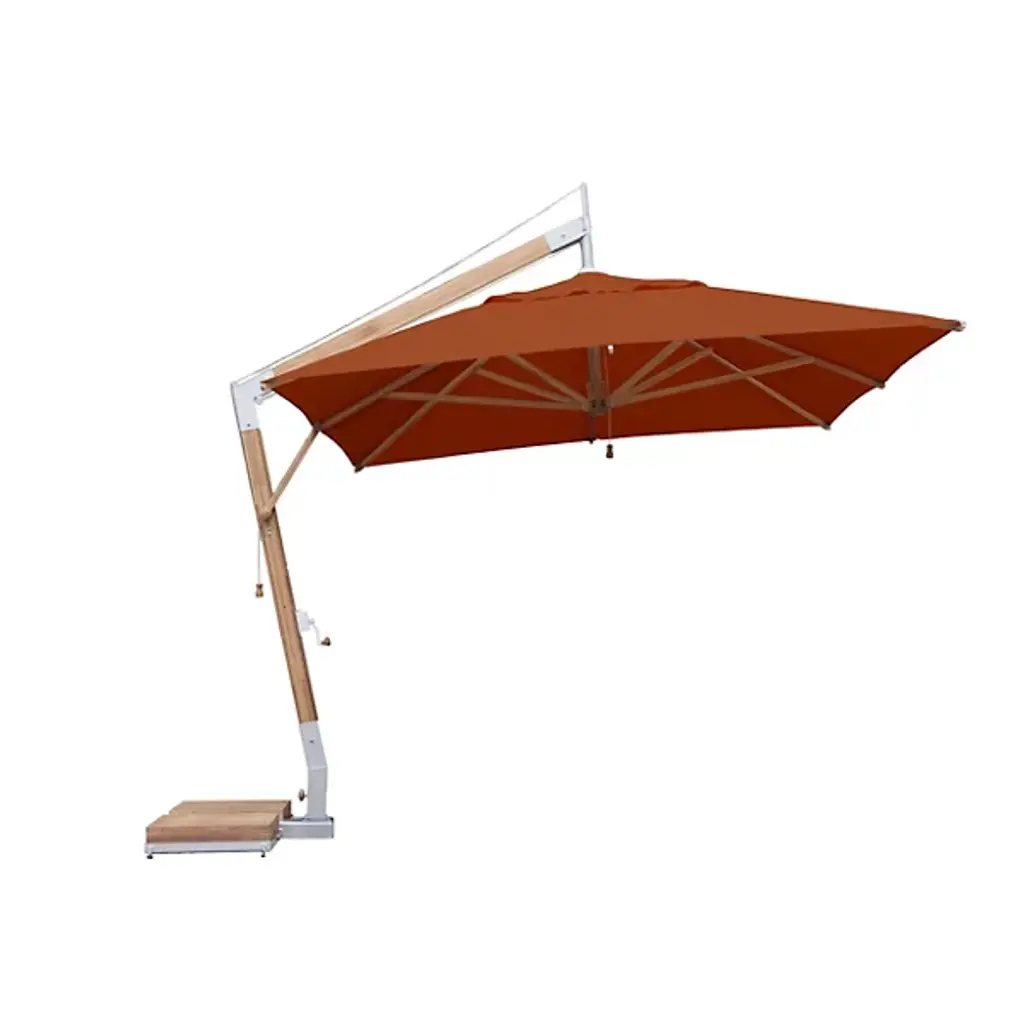 Sirocco Square Side Wind Bamboo Cantilever Umbrella With Base