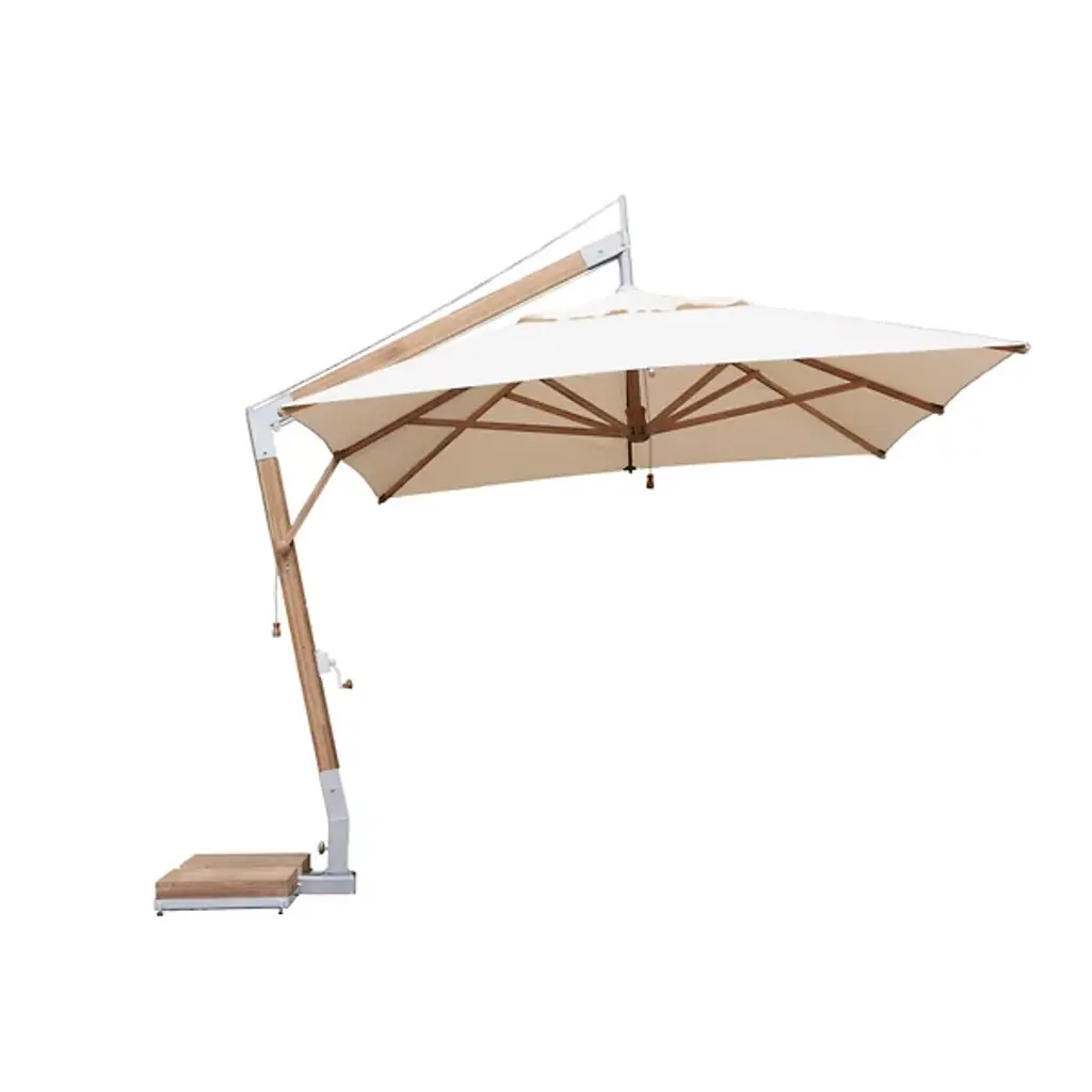 Square Levante Side Wind Bamboo Cantilever Umbrella With Base, 10 Ft.