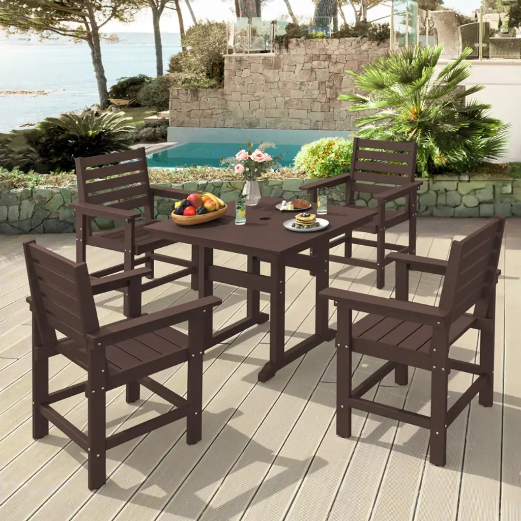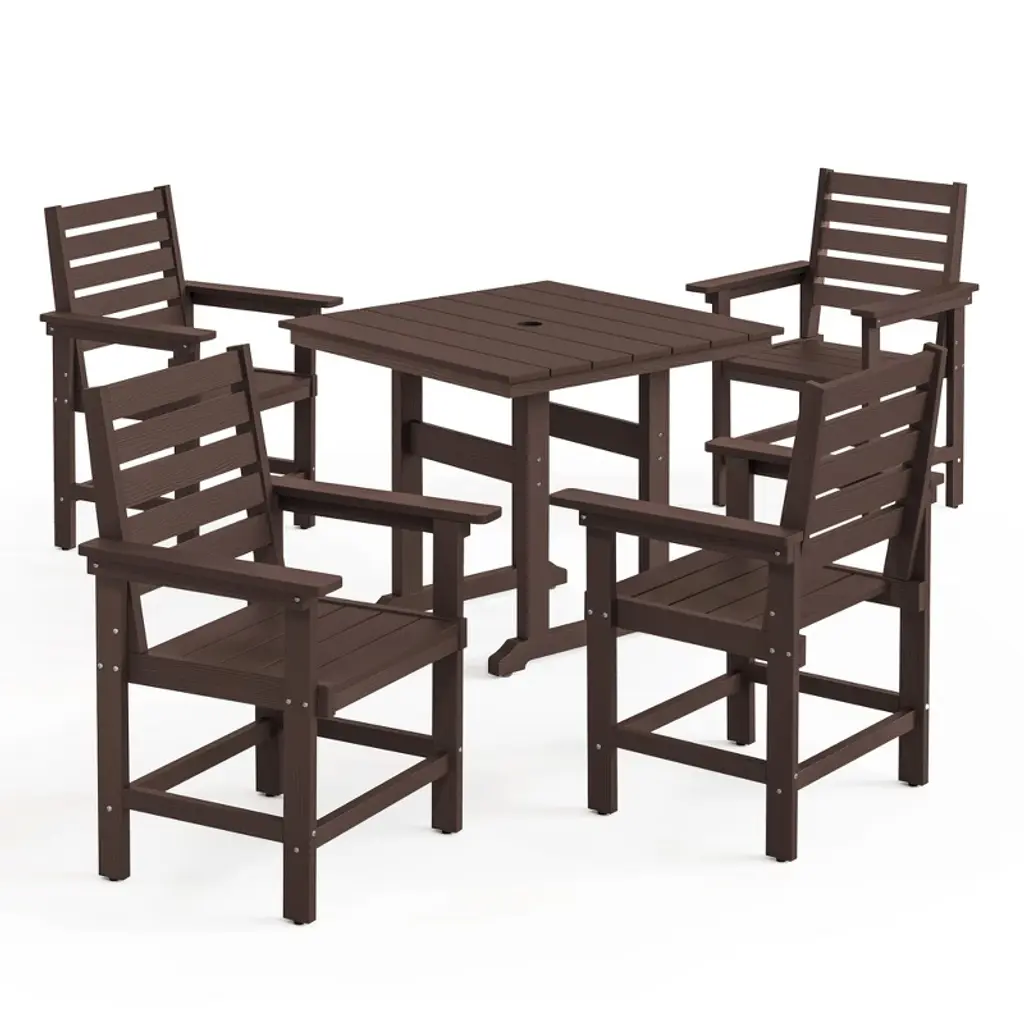 Square Outdoor Dining Tables For 4, Hdps Weather Resistant Patio Dining Table, 35" Outdoor Tables With 1.96" Umbrella Hole, Dark Brown