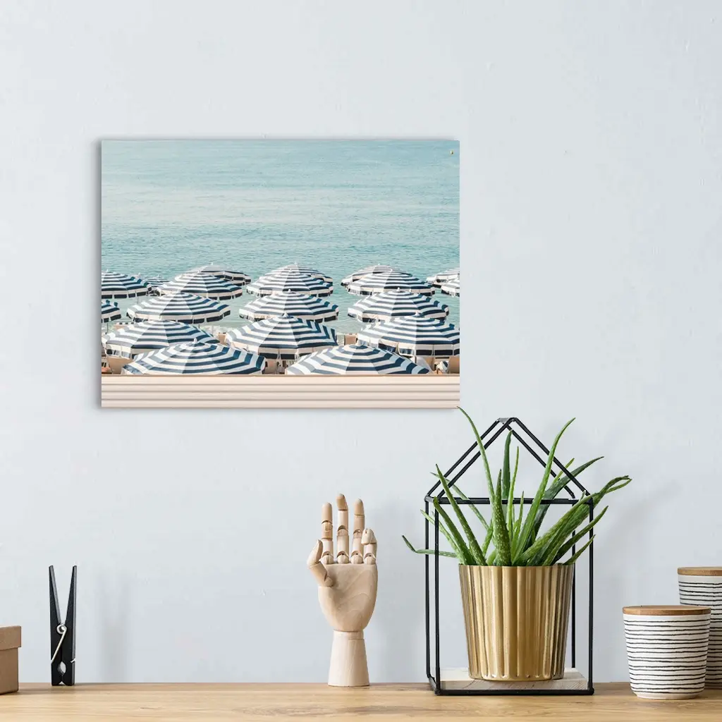 Striped Beach Umbrellas wall art for home and office decor. Discover canvas art prints, photos, mural, big canvas art and framed wall art in GreatBigCanvas.com's varied collections.