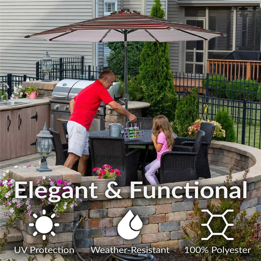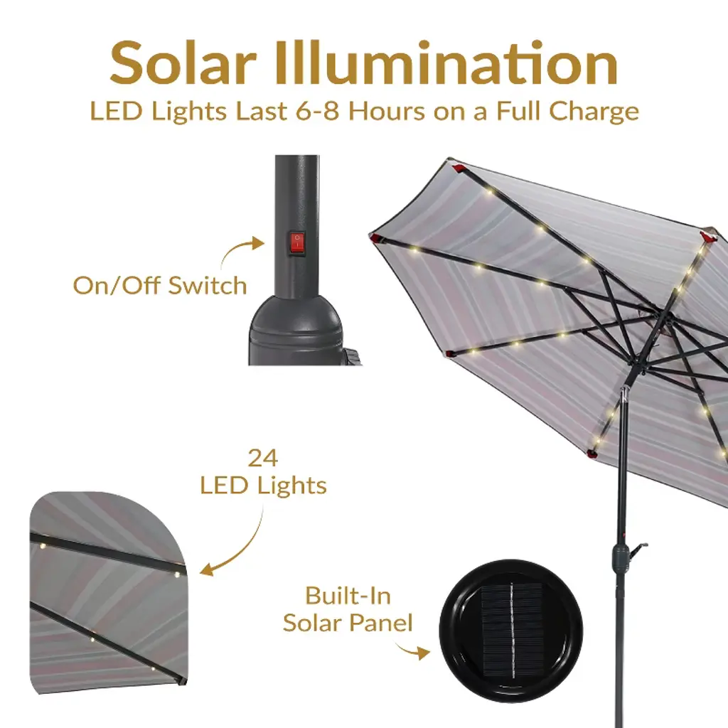 Sunnydaze Outdoor Aluminum Patio Umbrella With Solar Led Lights, Tilt, And Crank - 9' - Awning Stripe