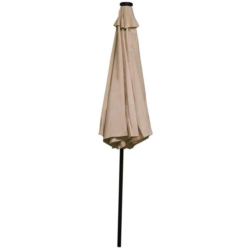 Sunnydaze Outdoor Solar Patio Umbrella With Polyester Canopy, Led Lights And Push Button Tilt And Crank - 9' - Beige