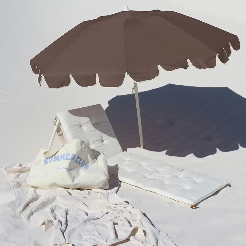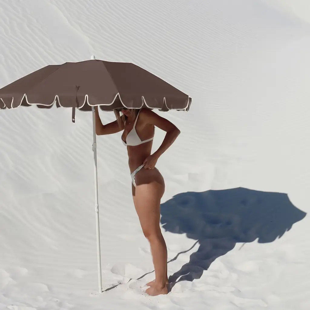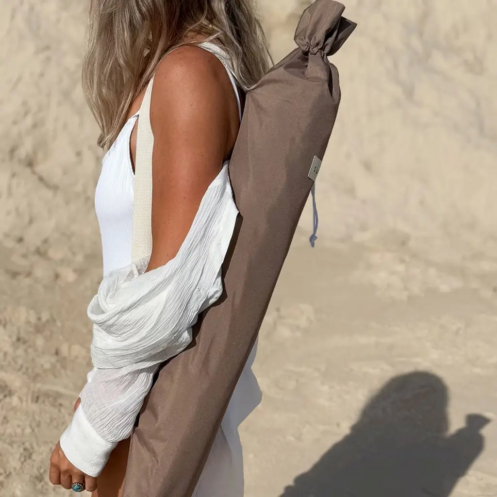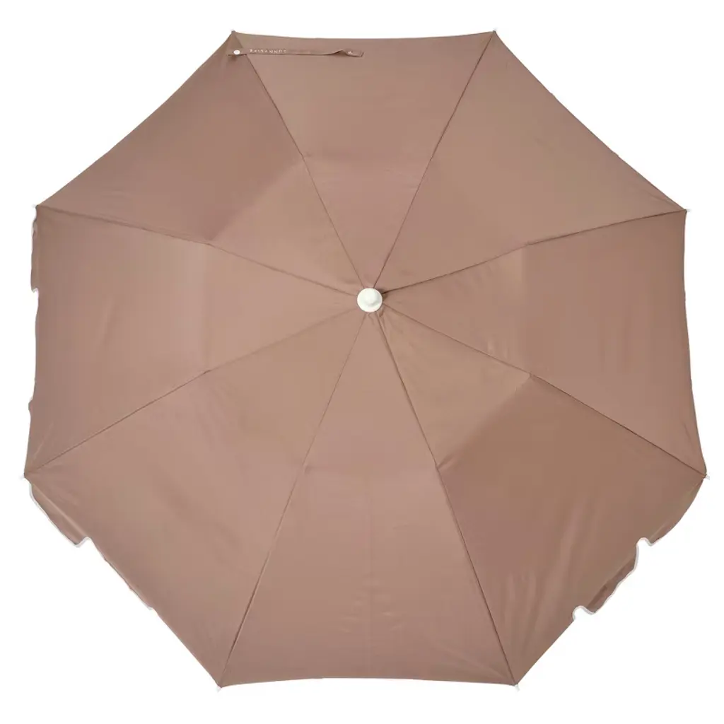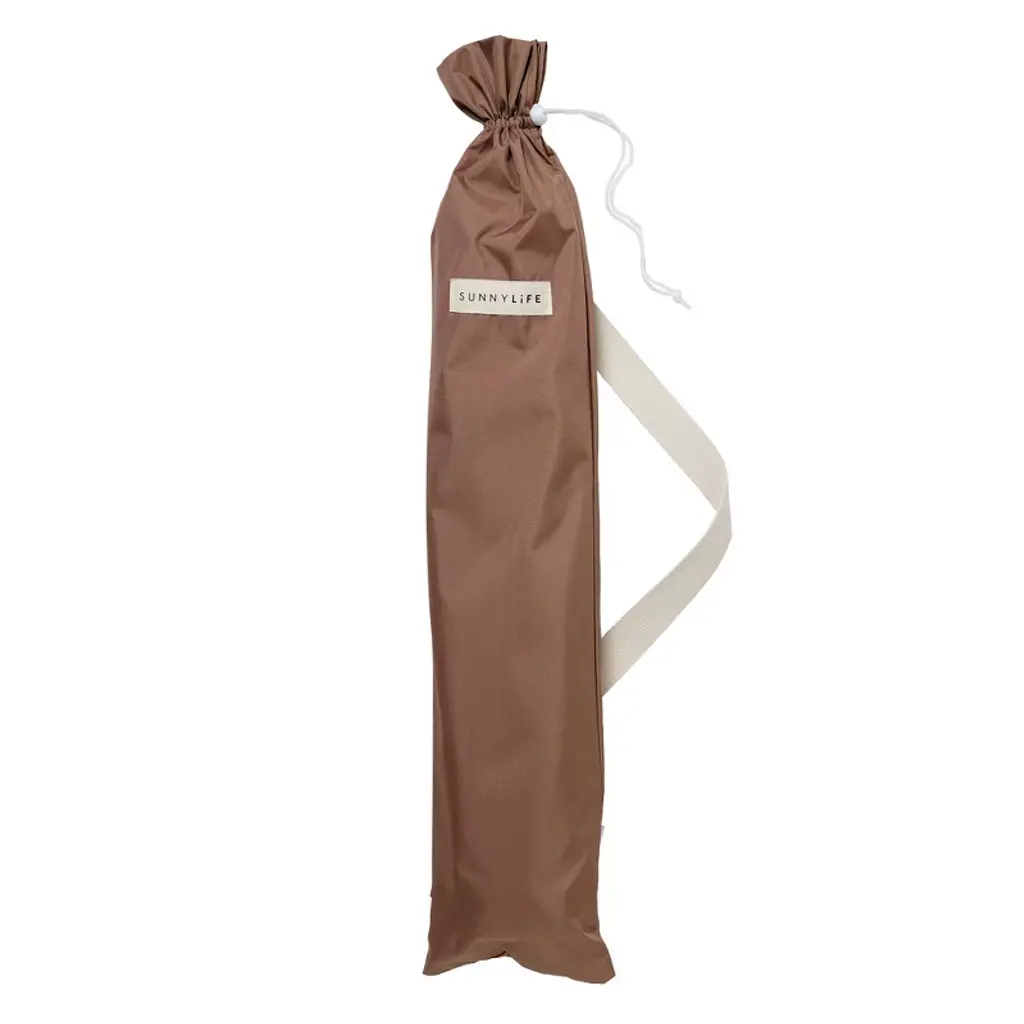 COMPACT BEACH UMBRELLA: RUSTICO DRIFTWOOD - Seek all day shade with the ultimate beach companion. The Compact Beach Umbrella is functional and compact, ultra easy to carry with space for two to lounge beneath its canopy. Embrace the perfect balance of style and function. Designed to offer all-day shade and comfort, this umbrella is your ideal beach companion. Its compact and lightweight design makes it effortless to carry, while still offering ample space for two to relax underneath. Made from durable 100% polyester, it provides UPF50 sun protection to keep you safe from harmful UV rays. With its easy assembly, it folds down to just 77cm, making it ultra-portable. The steel pole features a sand screw tip for extra stability, while the aluminum alloy tilt function allows for adjustable sun coverage. Plus, it comes with a convenient carry bag and shoulder strap for hassle-free transport. Bring a laid-back yet stylish touch to your beach experience. OVERVIEW: Cover 100% polyester with UPF50 sun protection. Lightweight and compact structure. Easy to assemble. Folds down to 77cm in carry bag. Steel pole with sand screw tip for extra grip in the sand. Aluminum alloy 360-degree tilt function protection. Material: Polyester, Steel, Fiberglass. SIZE: 66.9 x 66.9 x 78.8 in (170 x170 x 200 cm). 4.3lbs (1.95kg). RUSTICO: Color & print palette - Imagine coastal morning walks with an iced latte in hand. Sandy toes, collecting ocean treasures of seashells and driftwood foliage along the seashore. Made for the low-key beach lover who values an unpretentious earthy pallet.
