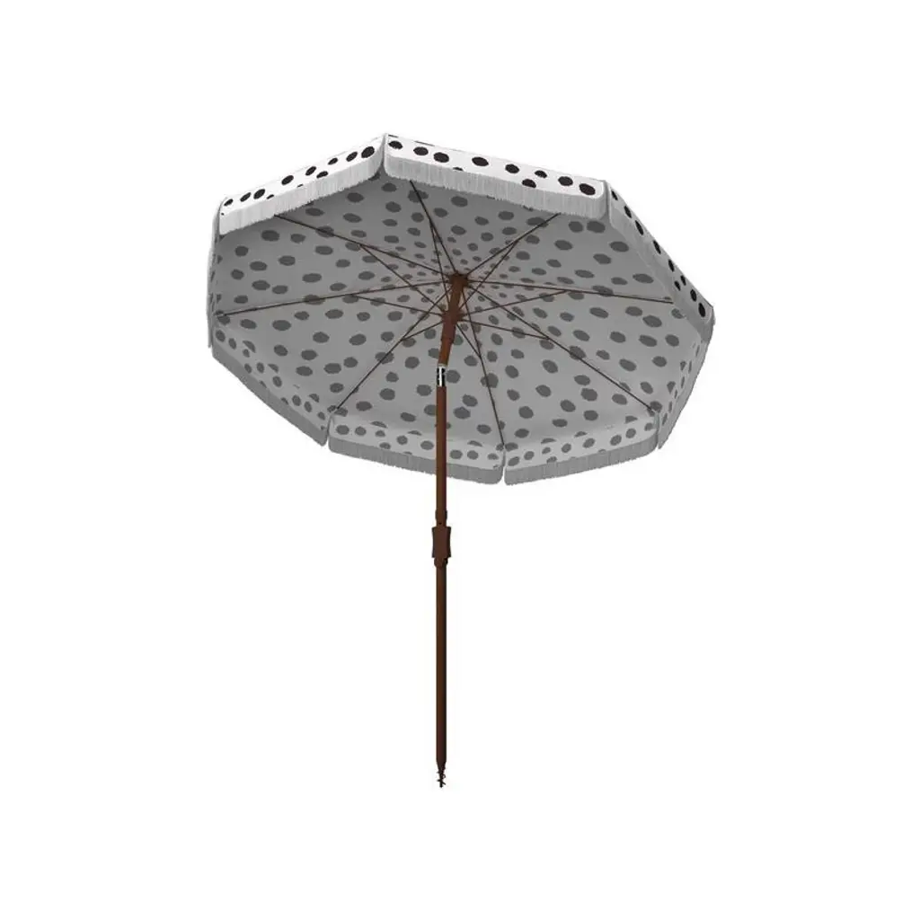 Elevate your beach day with the Sydney 6.5 ft Beach Umbrella in chic Black and White Polka Dot. Perfect for providing shade and style, this umbrella adds a touch of elegance to any seaside outing. Its bold, classic pattern complements a range of beach ensembles and ensures you stand out in the crowd. Designed for effortless setup, this umbrella allows you to enjoy more time relaxing under its ample canopy. The sturdy construction and user-friendly design make it an ideal choice for both casual sunbathers and avid beachgoers. Its lightweight frame ensures easy transport, making those spontaneous beach trips a breeze. Whether lounging with friends or enjoying a solo retreat, the Sydney Beach Umbrella is your go-to companion for a day by the waves. Embrace the sun without compromising on comfort and style.