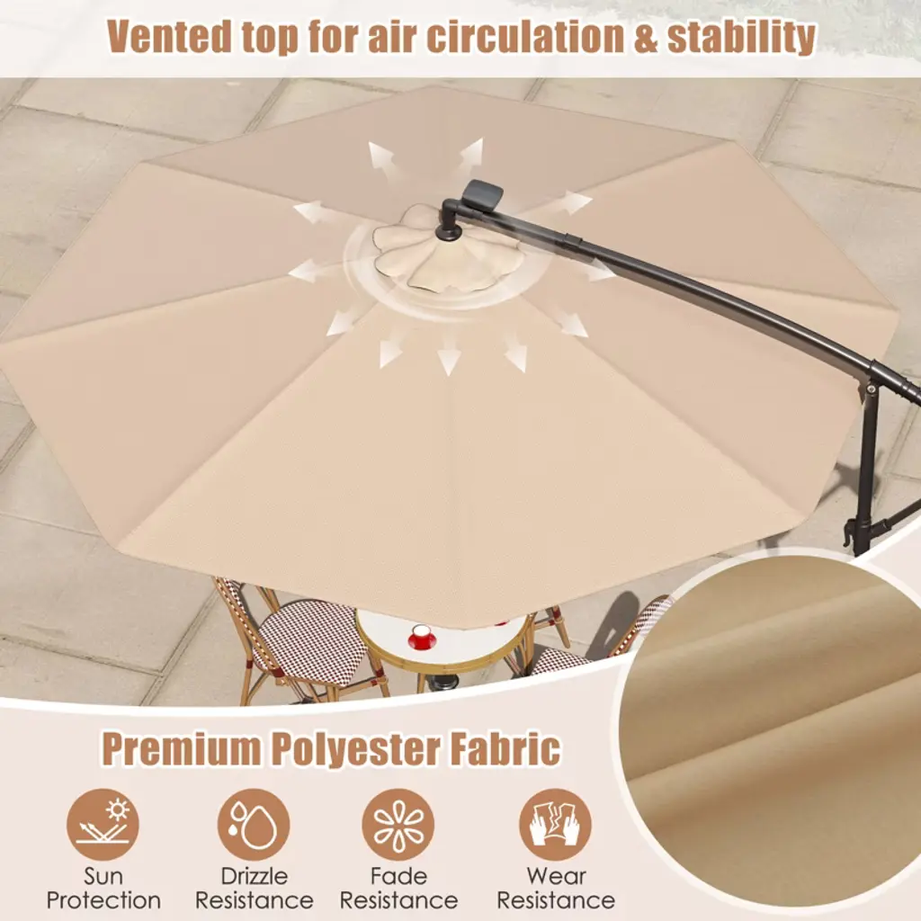 Tangkula 10 Ft Solar Offset Hanging Umbrella W/ 40 Lamp Beads Solar Panel Easy Tilt Adjustment Lighted Patio Cantilever Umbrella Tan