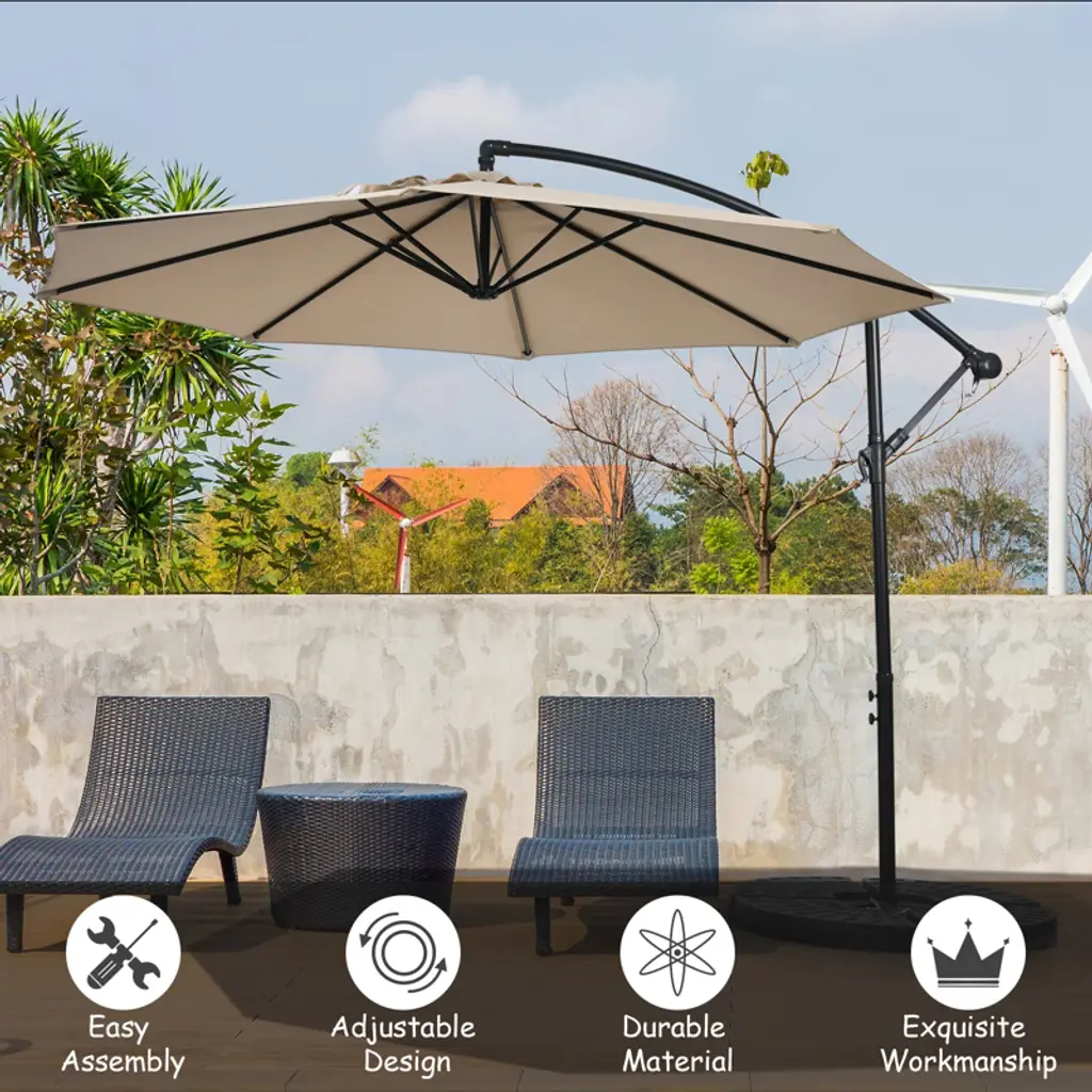 Tangkula 10ft Patio Offset Umbrella 8 Ribs Cantilever Umbrella W/crank For Poolside Yard Lawn Garden Beige