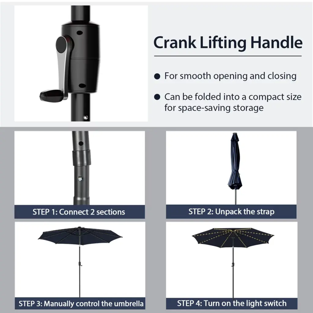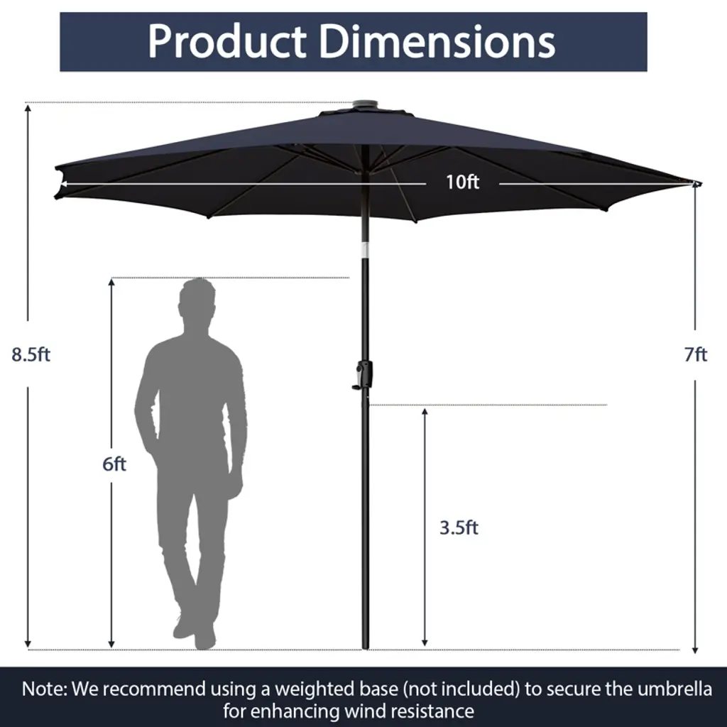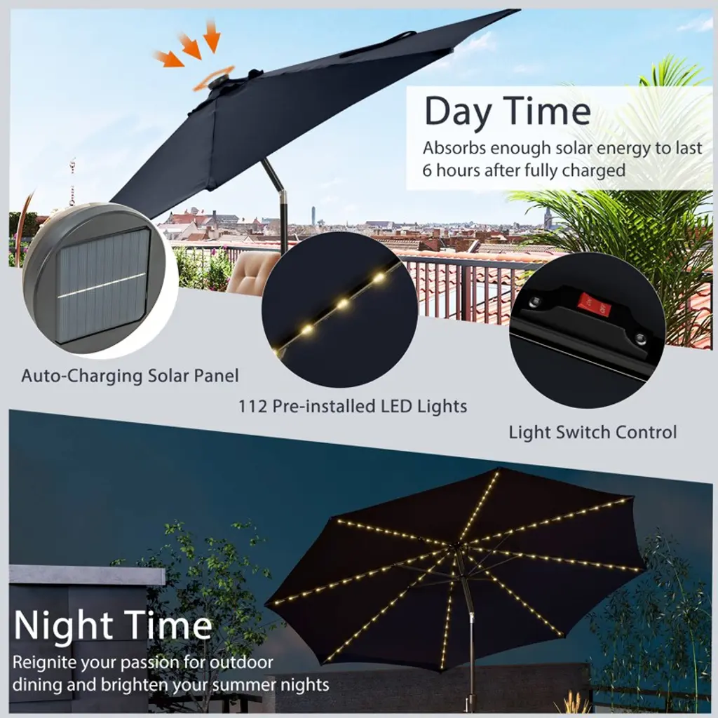Tangkula 10ft Solar Patio Umbrella With 112 Led Lights Outdoor Table Market Umbrella With Crank Lifting Handle & Push Button Tilt System Navy