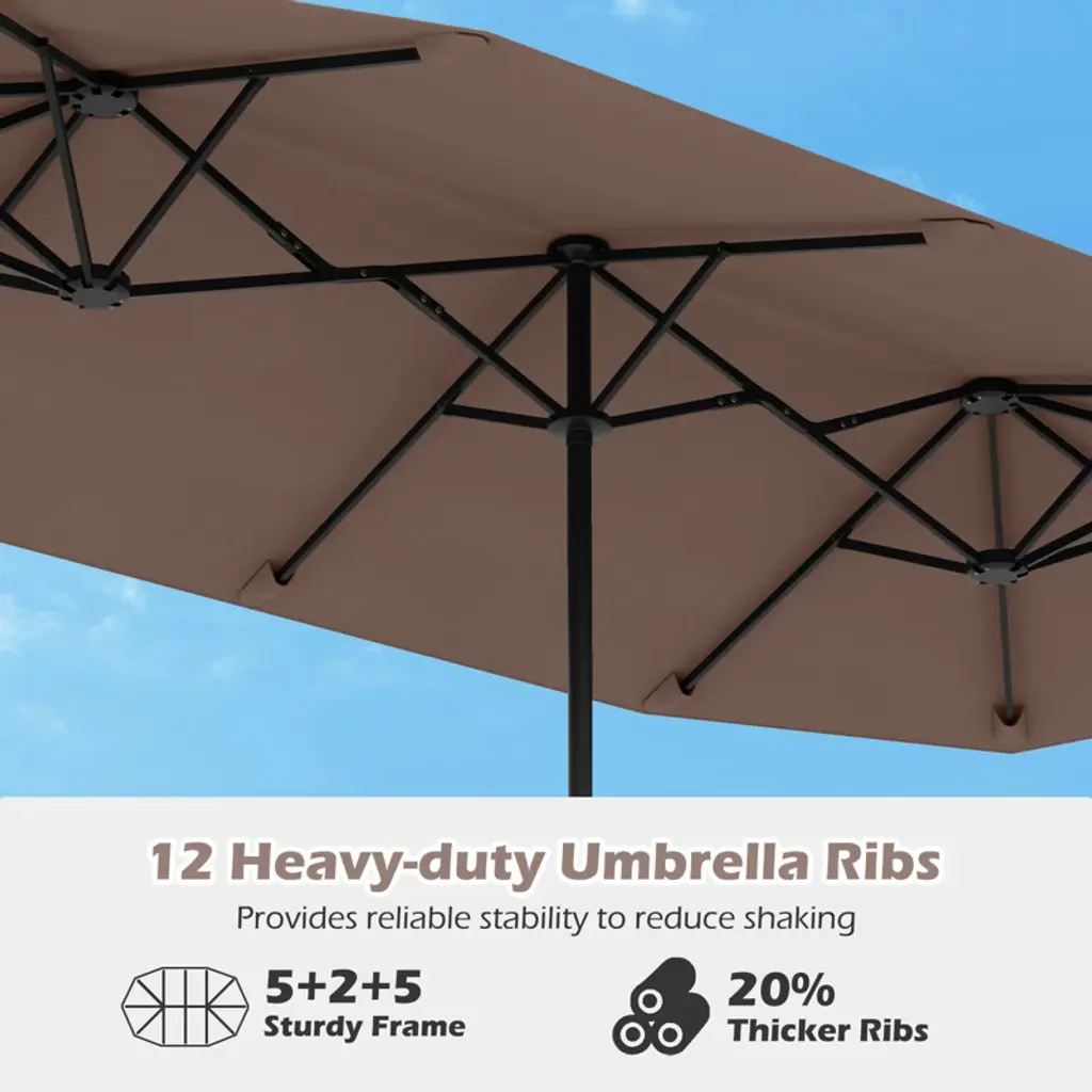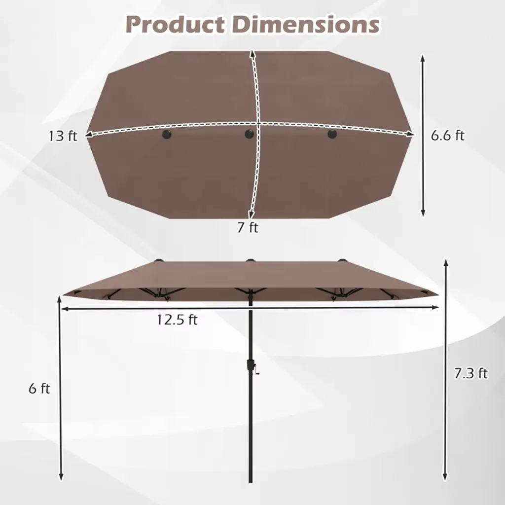 Tangkula 13 Ft Double-sided Patio Umbrella Outdoor Large Twin Size Umbrella Coffee