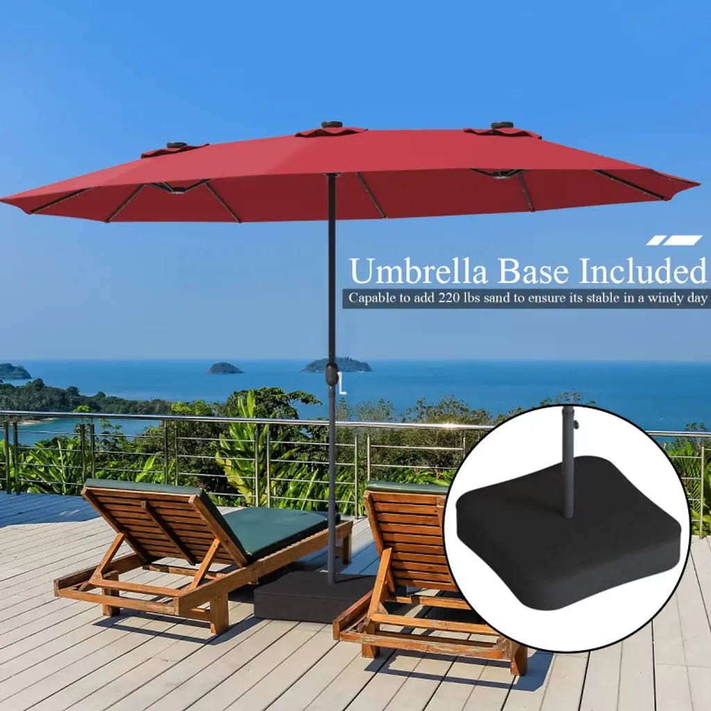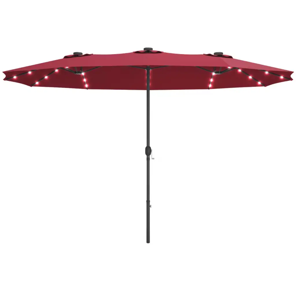 Tangkula 15' Outdoor Solar Led Patio Double-sided Umbrella Burgundy