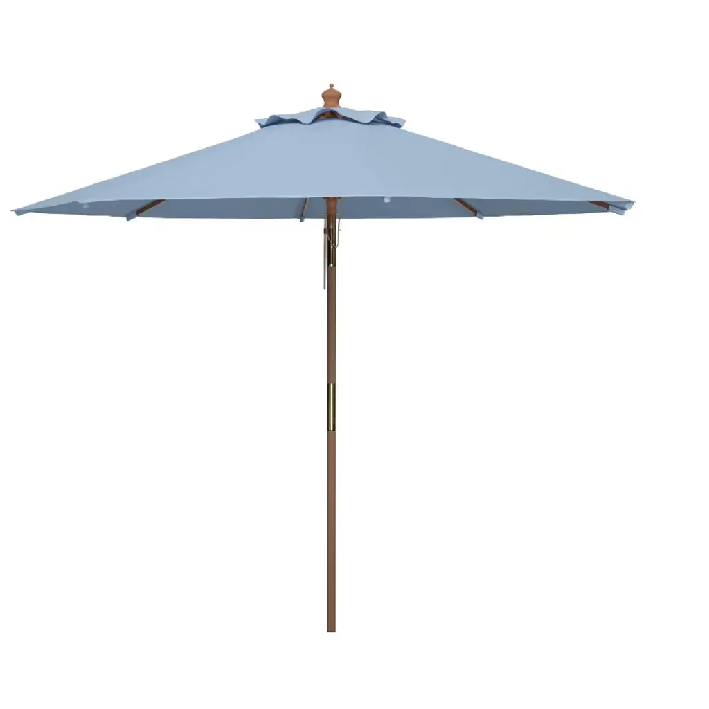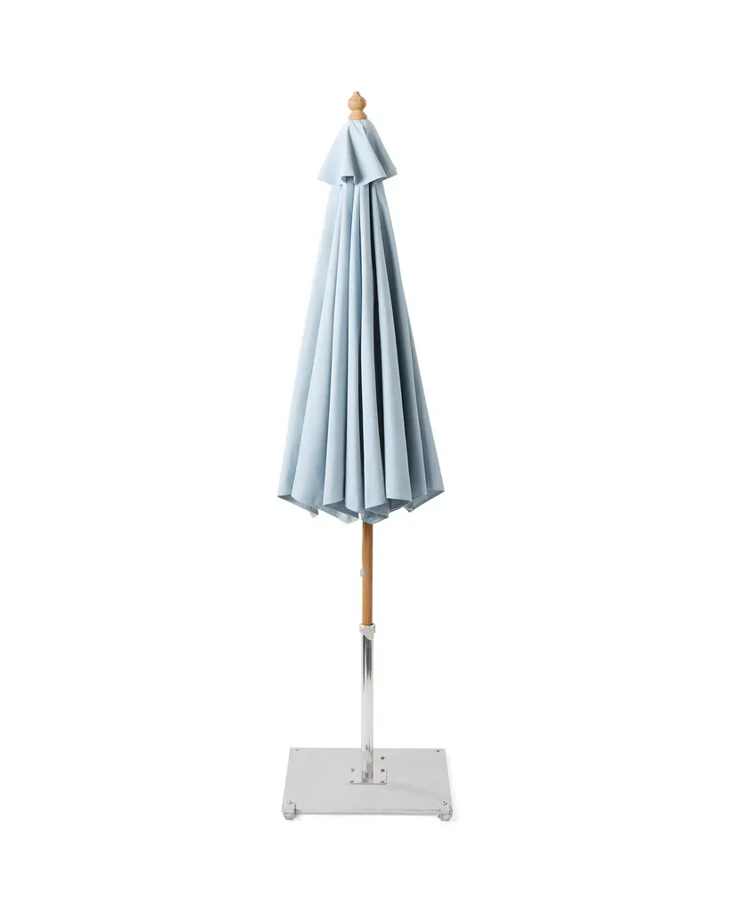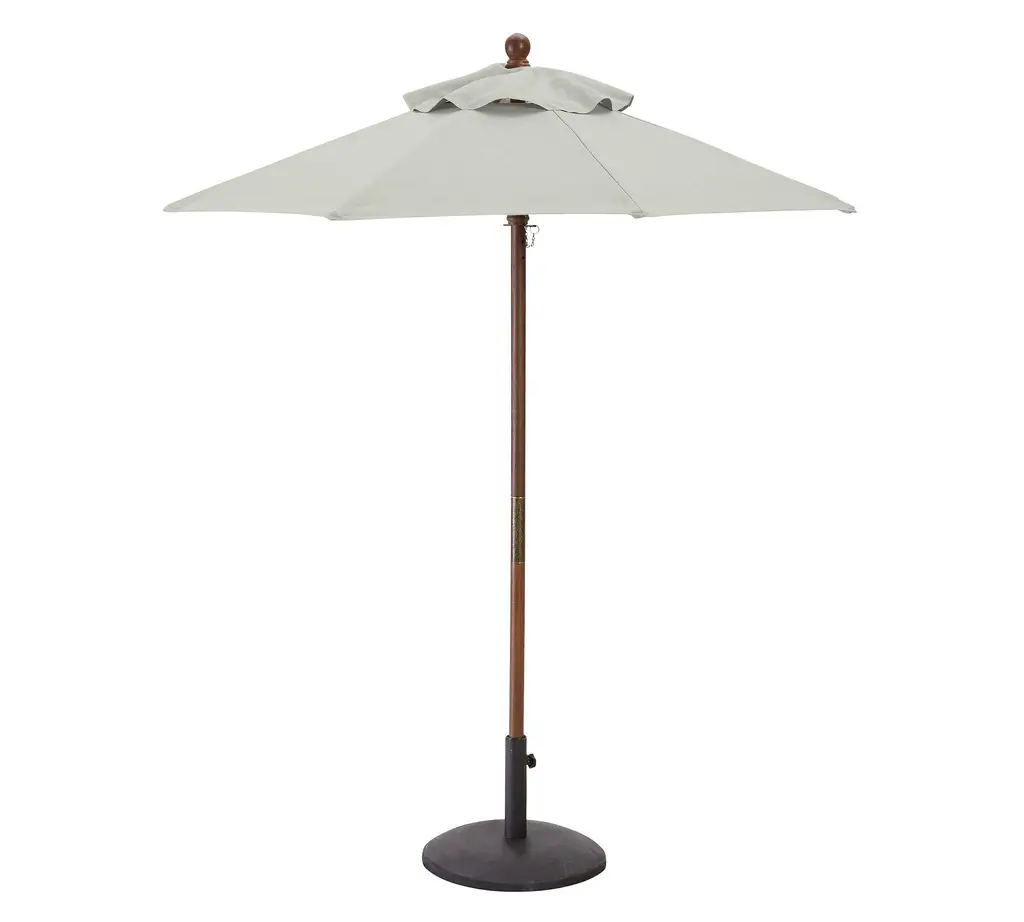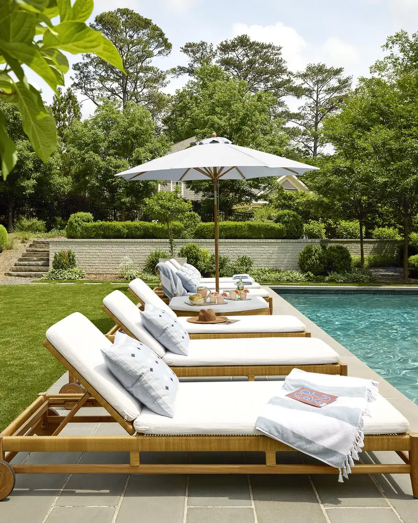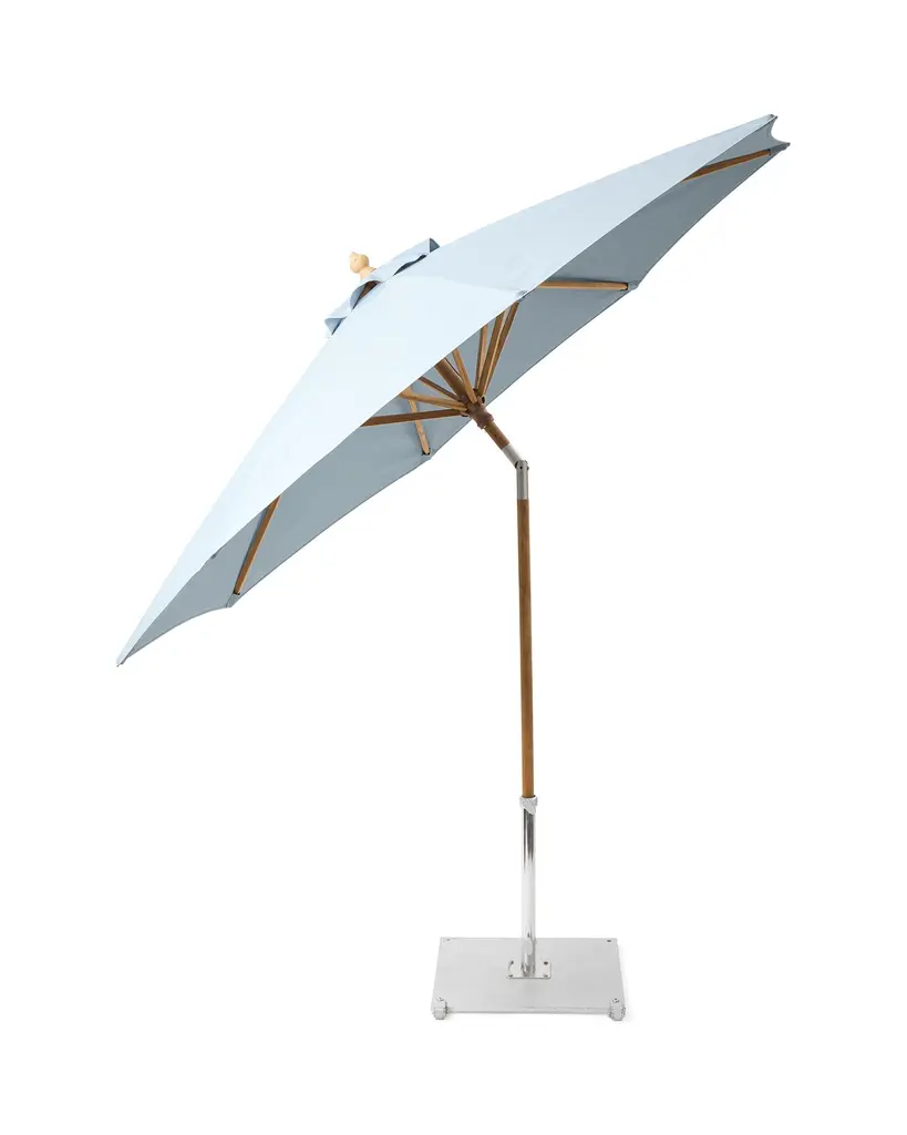 Under cover. The secret to great exterior design: a shady respite, well styled. A large canopy for generous coverage. Teak for polish.