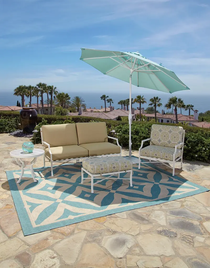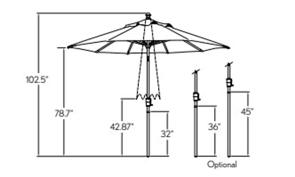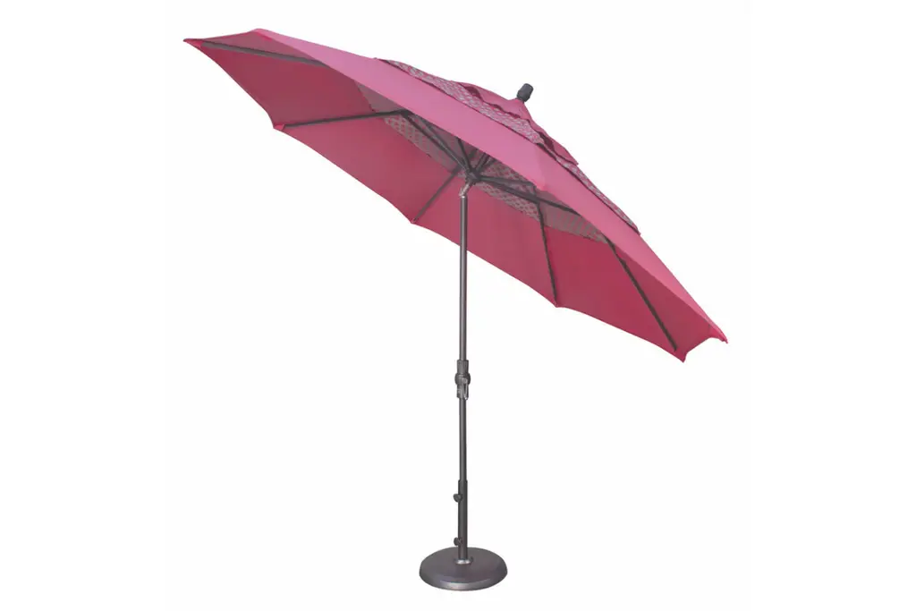 This Treasure Garden 9' Push Button Tilt Center Post Umbrella offers practicality and value. It features a contemporary design that will look at home in any outdoor space. The easy-open crank allows operation from a sitting position, and the three-position tilt will keep you in the shade from dawn until dusk.