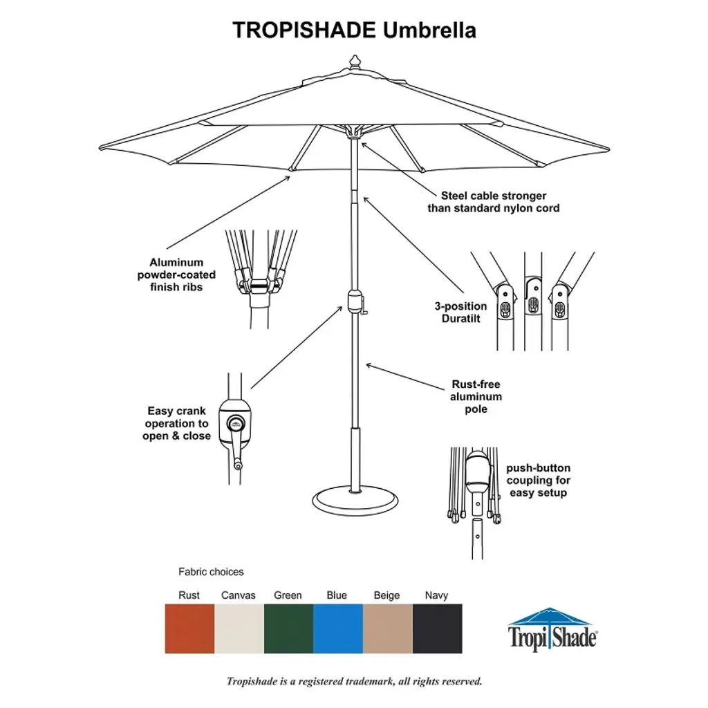 Sit back and relax in the cool shade provided by the Round Lighted Patio Umbrella from Tropishade. The aluminum pole of this outdoor umbrella comes with a powder-coated finish for lasting durability, and weather-resistant qualities so you can enjoy it year-round. Whether you're enjoying being hidden from the sun on a hot summer day or taking advantage of the built-in lights so you can hang out outside when it's dark out, you'll love this new addition to your porch or patio.