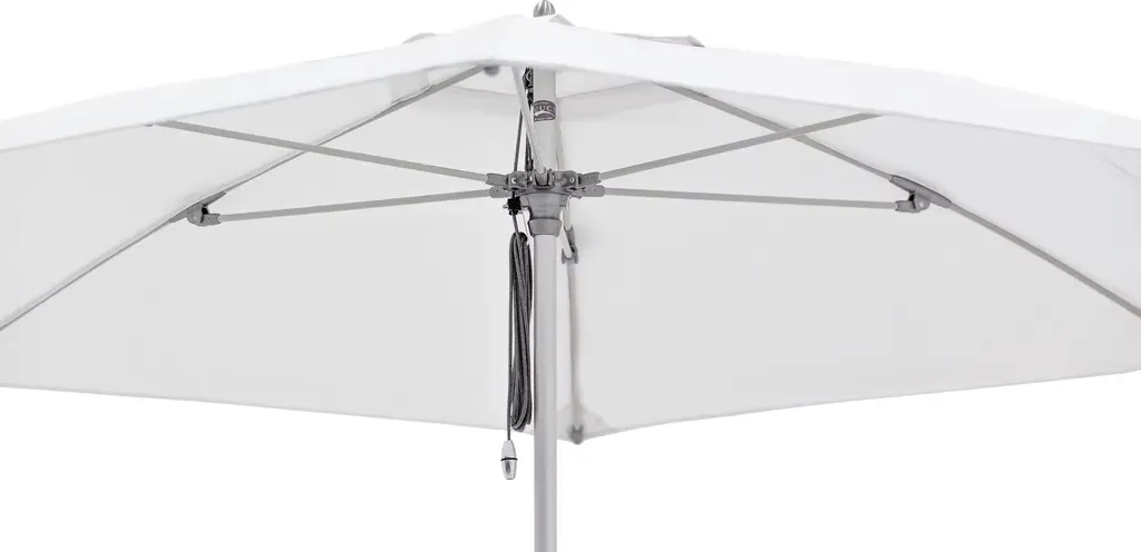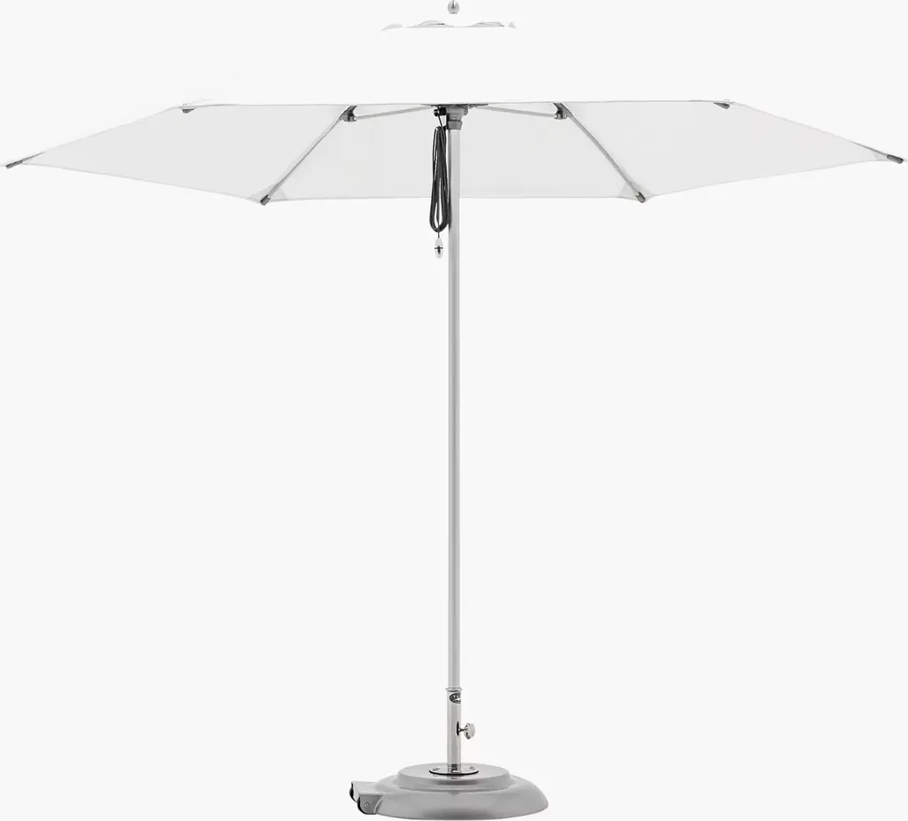 Designer Dougan Clarke, a skilled sailor who is well-versed in sails, rigging, and boat design, knows what will stand up to the elements. He tests Tuuci umbrellas' canopies and engineering in two wind tunnels at their Miami headquarters. Bay Master Fiber Flex is aptly named for its flexible fiberglass struts, which absorb the most punishing conditions. It's easy to use and maintain and is constructed of replaceable marine-grade components to ensure a lifetime of serviceability. Its cam cleat and pulley system lets you raise and lower the shade with ease. As with other shades, keep these in closed position during storms and when not in use. DWR is not responsible for accidents or damage caused by misuse or weather. Please note: Crazing lines may appear on the canopy fabric when it is first installed. Crazing is natural, due to the finishing of the fabric and does not affect the performance or characteristics of Sunbrella or other solution-dyed acrylic fabrics. The fabric remains water repellent as well as stain- and mildew-resistant and the lines will diminish over time with exposure to the elements.