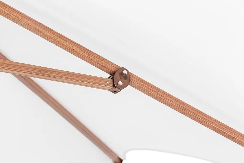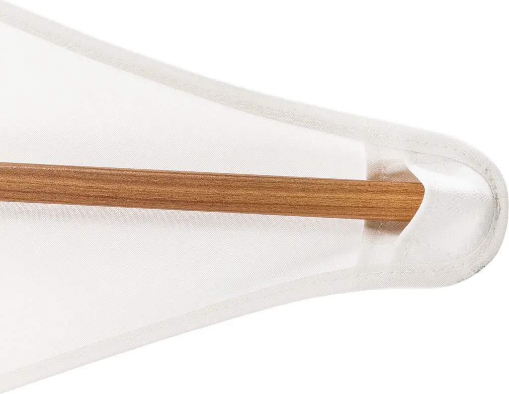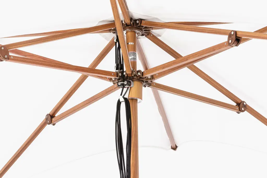Tuuci Ocean Master Manta Umbrella (2001) features a playful shade canopy inspired by the graceful manta ray. Designer Dougan Clarke, a skilled sailor who is well-versed in sails, rigging, and boat design, knows what will stand up to the elements. He tests Tuuci umbrellas' canopies and engineering in two wind tunnels at their Miami headquarters. Manta is easy to use and maintain and is constructed of replaceable marine-grade components to ensure a lifetime of serviceability. Its cam cleat and pulley system lets you raise and lower the shade with ease. As with other shades, keep these in closed position during storms and when not in use. DWR is not responsible for accidents or damage caused by misuse or weather. Please note: Crazing lines may appear on the canopy fabric when it is first installed. Crazing is natural, due to the finishing of the fabric and does not affect the performance or characteristics of Sunbrella or other solution-dyed acrylic fabrics. The fabric remains water repellent as well as stain- and mildew-resistant and the lines will diminish over time with exposure to the elements.