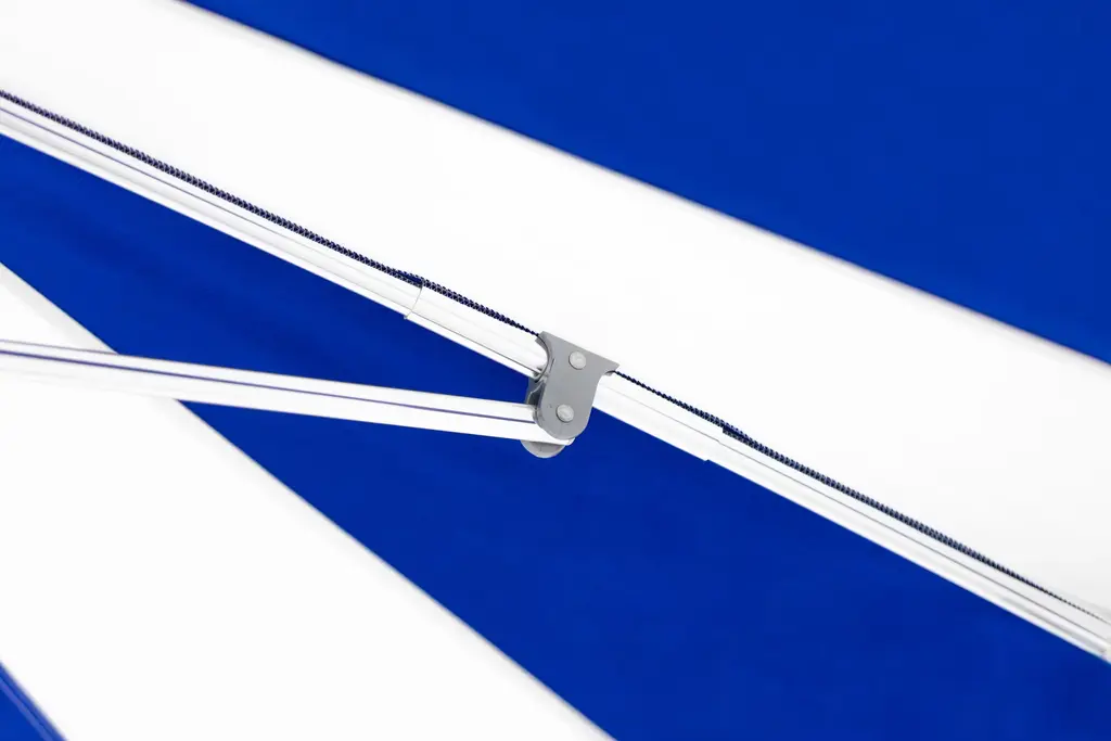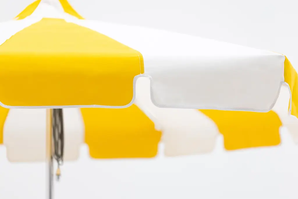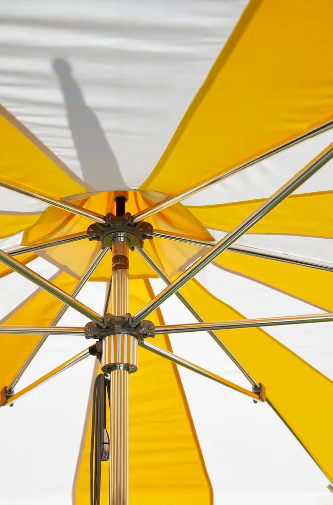 Designer Dougan Clarke, a skilled sailor who is well-versed in sails, rigging, and boat design, knows what will stand up to the elements. He tests Tuuci umbrellas' canopies and engineering in two wind tunnels at their Miami headquarters. Pagoda is easy to use and maintain and is constructed of replaceable marine-grade components to ensure a lifetime of serviceability. Its cam cleat and pulley system lets you raise and lower the shade with ease. As with other shades, keep it in closed position during storms and when not in use. DWR is not responsible for accidents or damage caused by misuse or weather. Please note: Crazing lines may appear on the canopy fabric when it is first installed. Crazing is natural, due to the finishing of the fabric and does not affect the performance or characteristics of Sunbrella or other solution-dyed acrylic fabrics. The fabric remains water repellent as well as stain- and mildew-resistant and the lines will diminish over time with exposure to the elements.