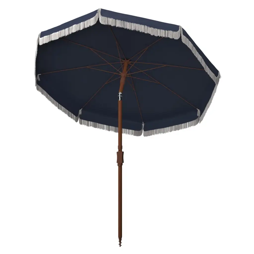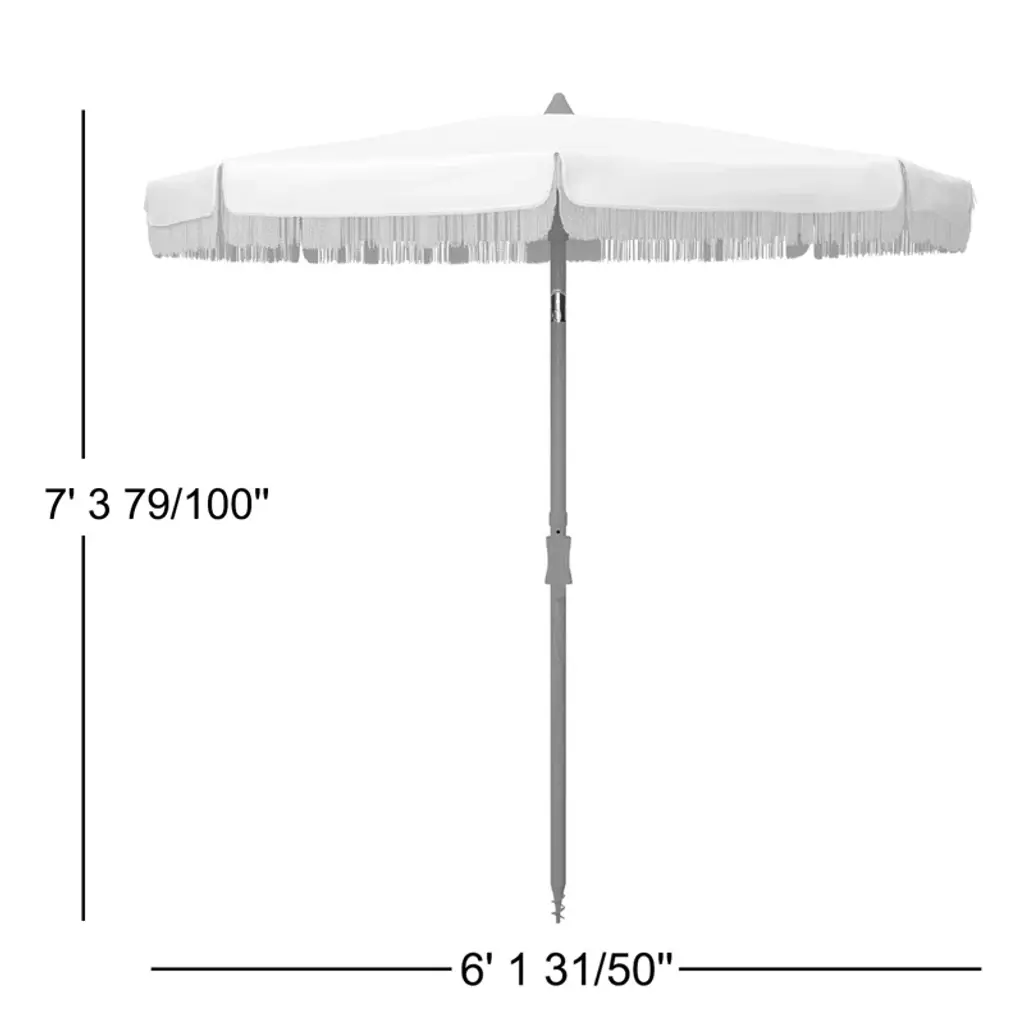 Create your own outdoor oasis with this market umbrella. The octagon-shaped canopy is made from polyester in your choice of color, and it's adorned with fringe detailing for a touch of whimsy. This piece is founded upon a powder-coated aluminum pole with a manual lift design, and it has a 30° tilt to help block the sun as it crosses the sky from morning to afternoon. Simply anchor this umbrella inside your compatible patio table or stand (sold separately), and enjoy.