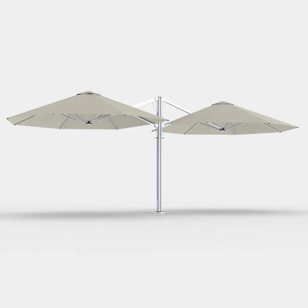 Experience the beauty and durability of the Unity™ Octagon Duo Umbrella from Shadowspec Umbrellas. Crafted with aluminum and stainless steel, this umbrella combines natural inspiration with engineering to thrive in the wild. Easy to open, stunning to look at, and perfect for any outdoor setting, including hospitality and home, this spacious umbrella is perfect for larger outdoor seating and dining areas. Highlights