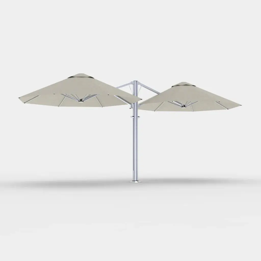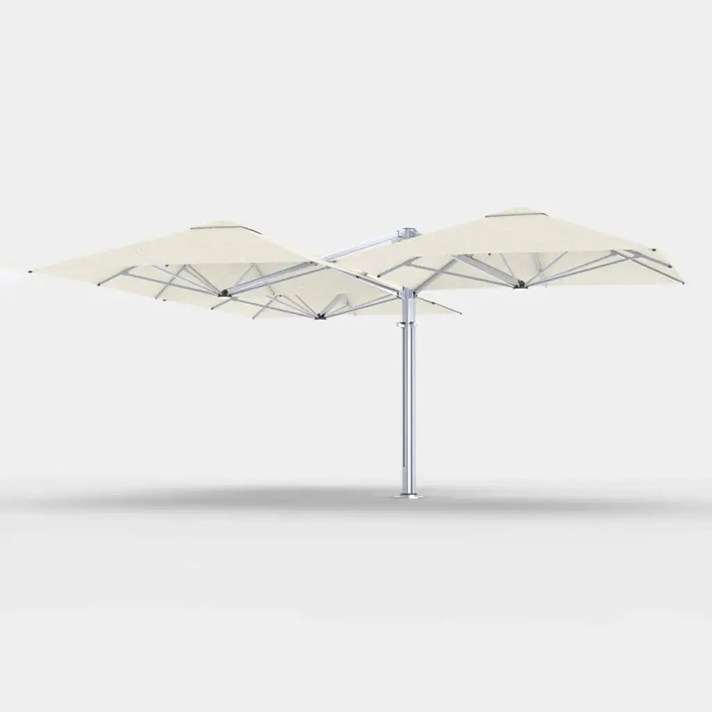 Discover the perfect balance of form and function with the Unity™ Square Trio Umbrella from Shadowspec Umbrellas. Crafted from durable aluminum and stainless steel, this umbrella is built to withstand the elements. Inspired by nature, it's easy to open and provides stylish shade for any spacious outdoor dining or seating area. Elevate your hospitality space or home with this premium outdoor shade solution. Highlights