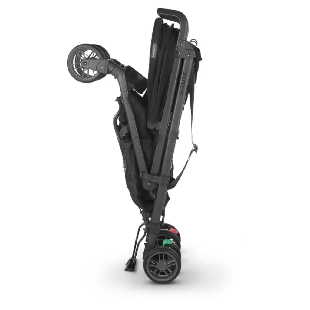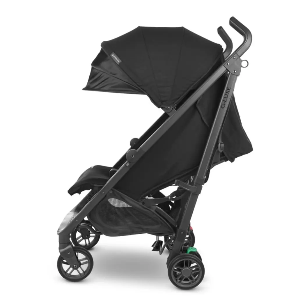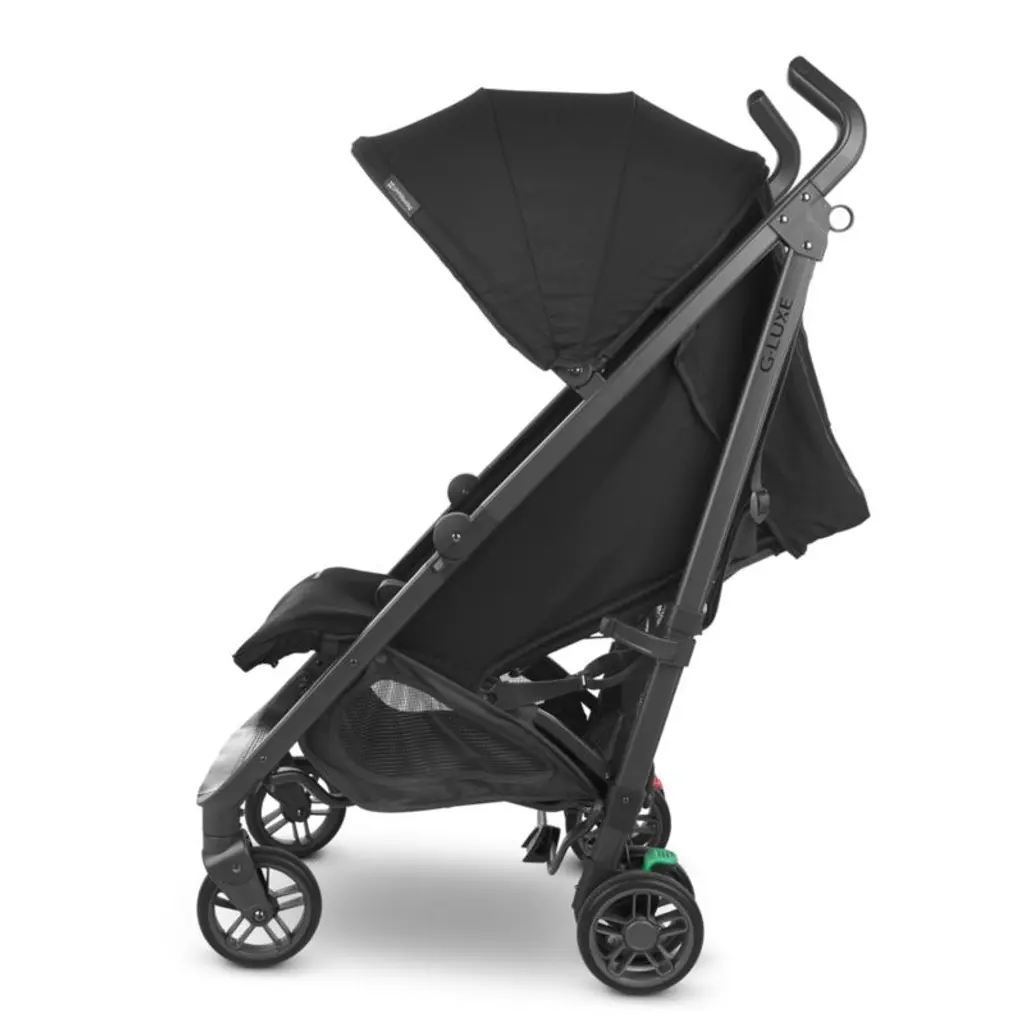 A lightweight umbrella stroller beloved for its smooth ride, the UPPAbaby® G-Luxe® is a feature-packed essential. Whether running errands or catching a nap on-the-go, your little one can rest comfortably in the one-handed reclining seat with adjustable footrest. The UPF 50+ sunshade extends so your baby can enjoy the sunniest of days, and the large, easy-access basket holds all your things. Whether boarding subways or maneuvering off curbs, the stroller is brought to a safe stop with one simple click. Hand-level triggers make it easy to fold with just your fingers, and it stands on its own once folded.