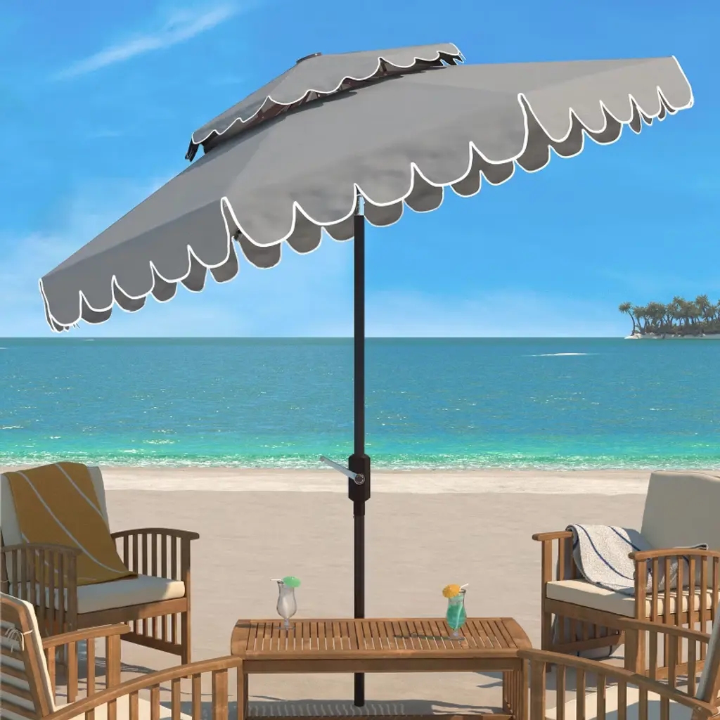 Venice 9Ft Round Double Top Crank Umbrella - Pat8210 - Grey - Safavieh